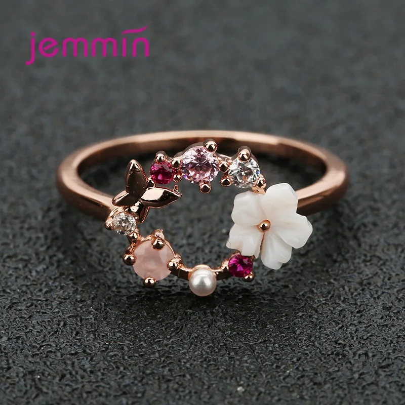 AMORUI Романтический счастливый бабочка женские кольца из розового ...