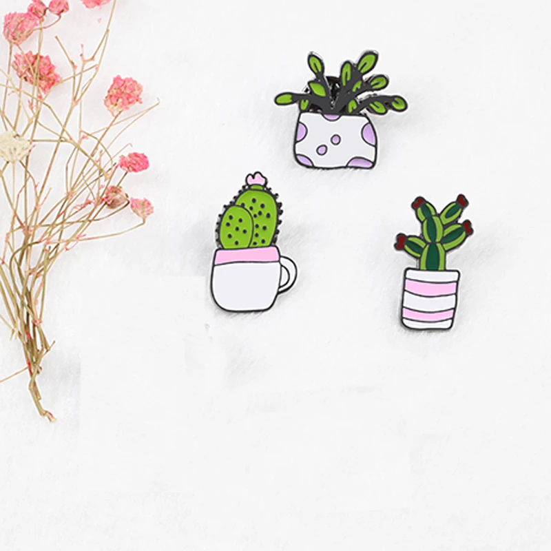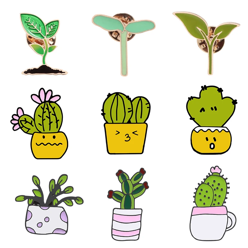 Эмалированные булавки для растений в горшке, мини-булавка в форме зеленого кактуса, брошь в форме травы, значок булавки на лацны, модные Мультяшные ювелирные изделия в подарок