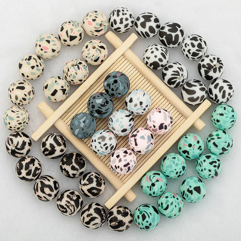 TYRY.HU силиконовые бусины 16 шт. без бисфенола А 1215 мм, леопардо...