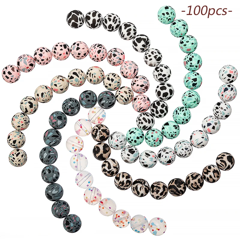 TYRY.HU, 100 шт., силиконовые бусины для детского прорезывателя «Terrazzo», бисер «сделай сам», бижутерия, зажим для пустышки без бисфенола А, 12/15 мм