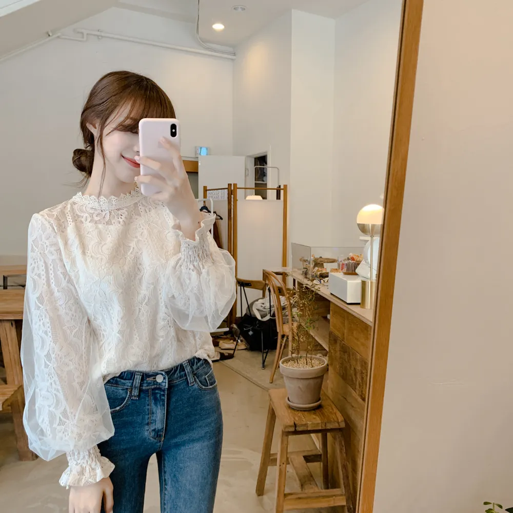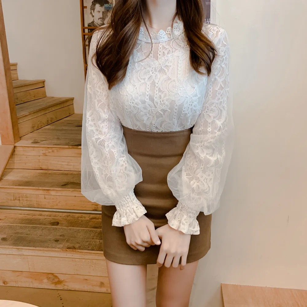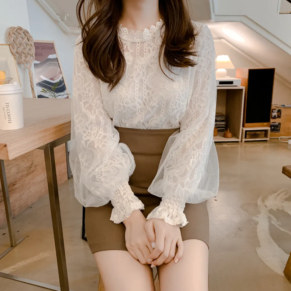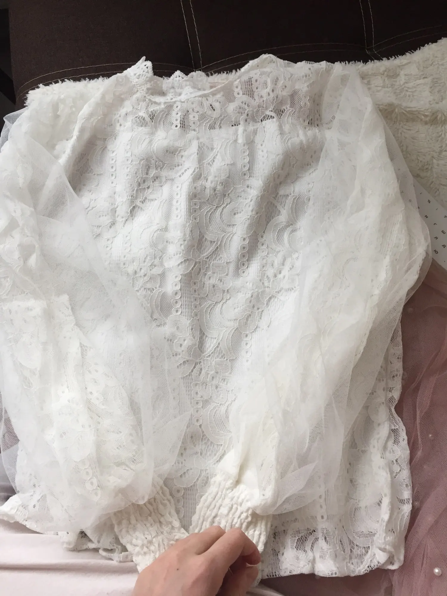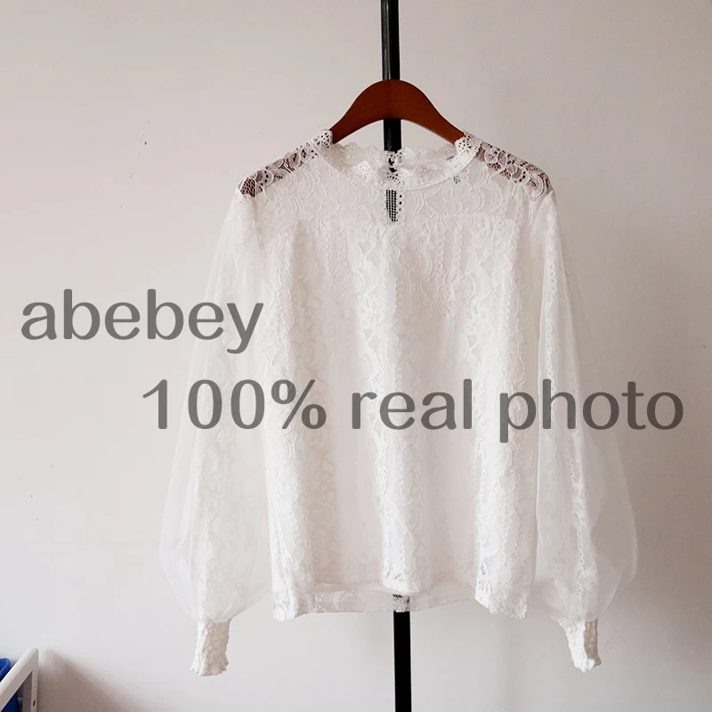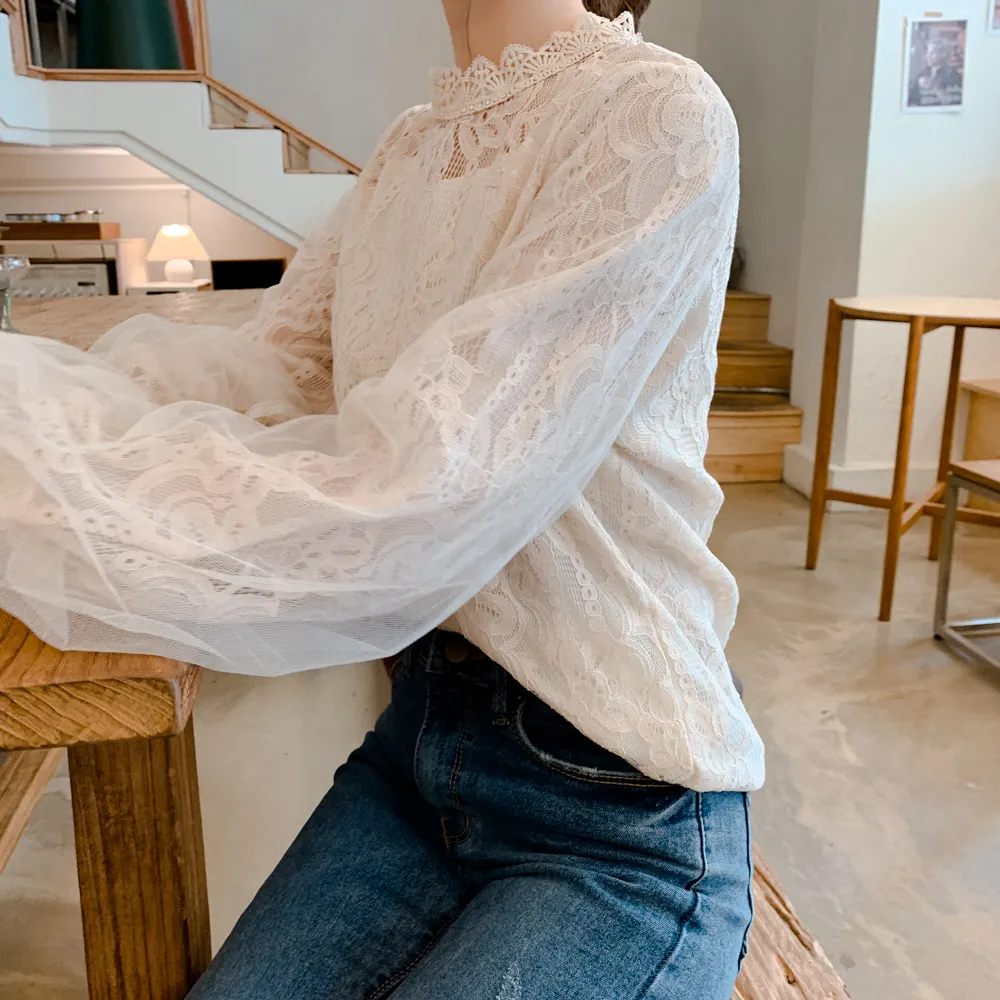 Блузка женская прозрачная, с длинными рукавами-фонариками и пуговицами