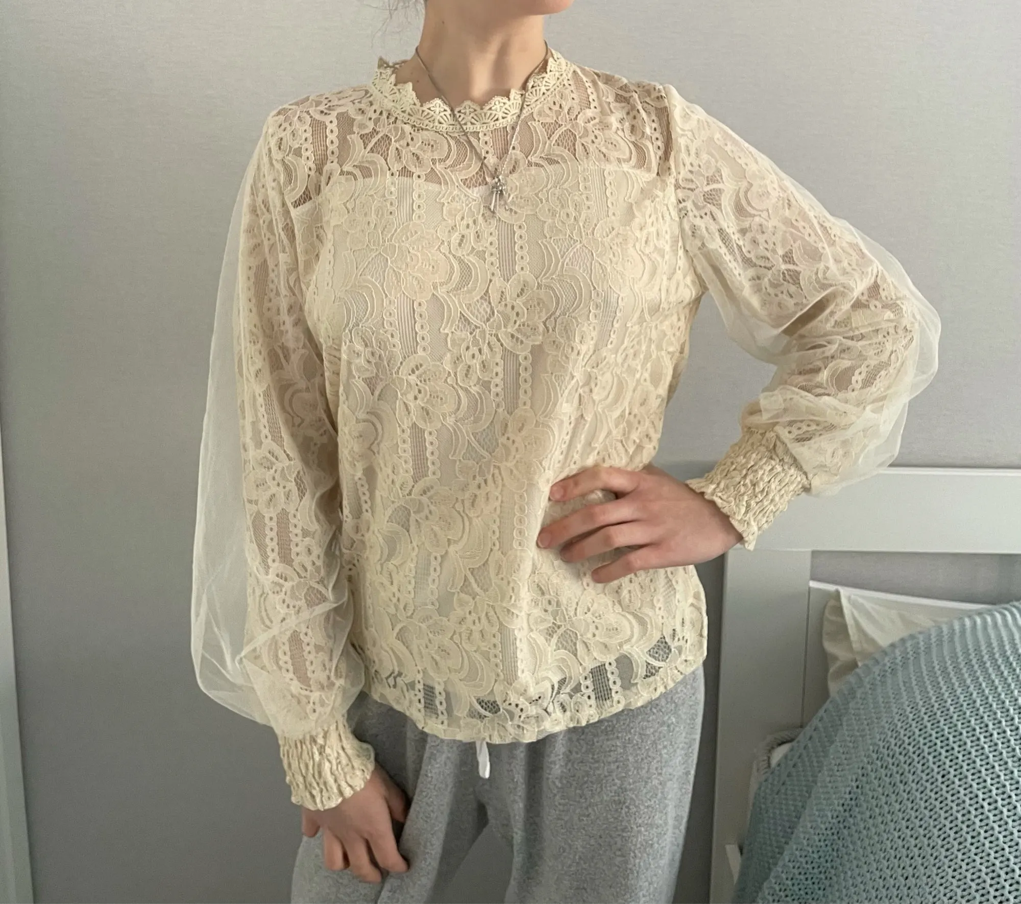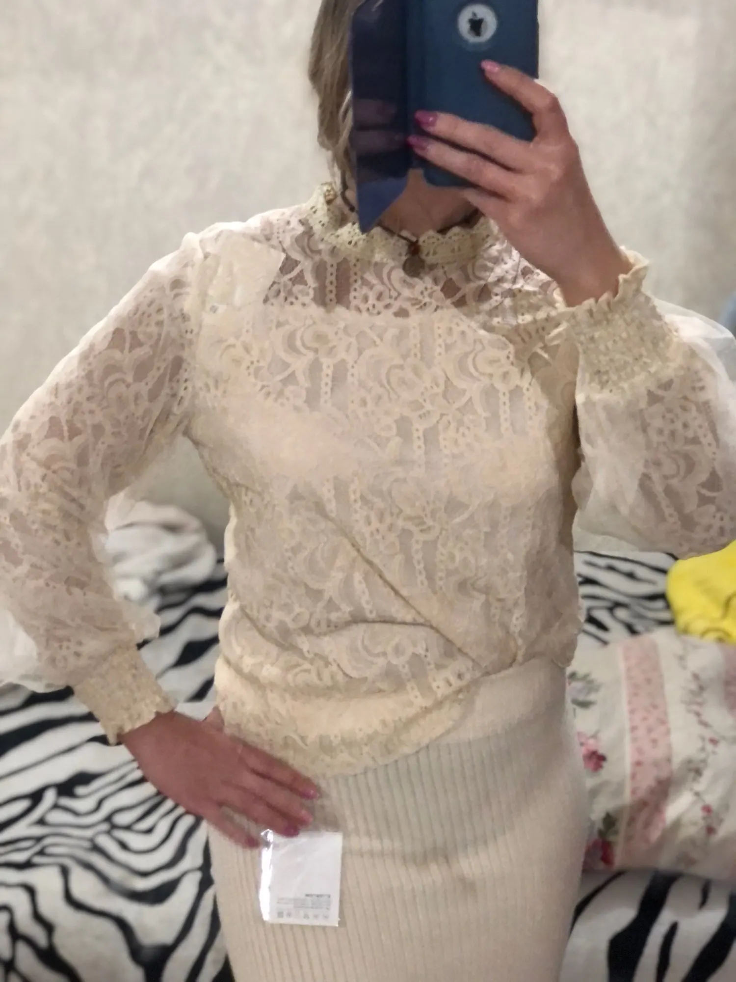 Заказала 27.11.2020 за 739 рублей. На фото блузка нежного цвета айвори, пришла 8.01.2021 блузка ужасного цвета грязного жёлтого, кружево смотрится дёшево.