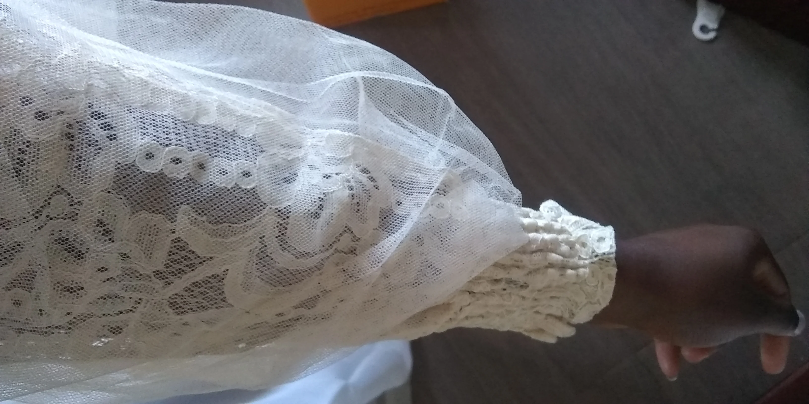 пришла быстро,очень нежная блузка,швы ровные,нитки не торчат