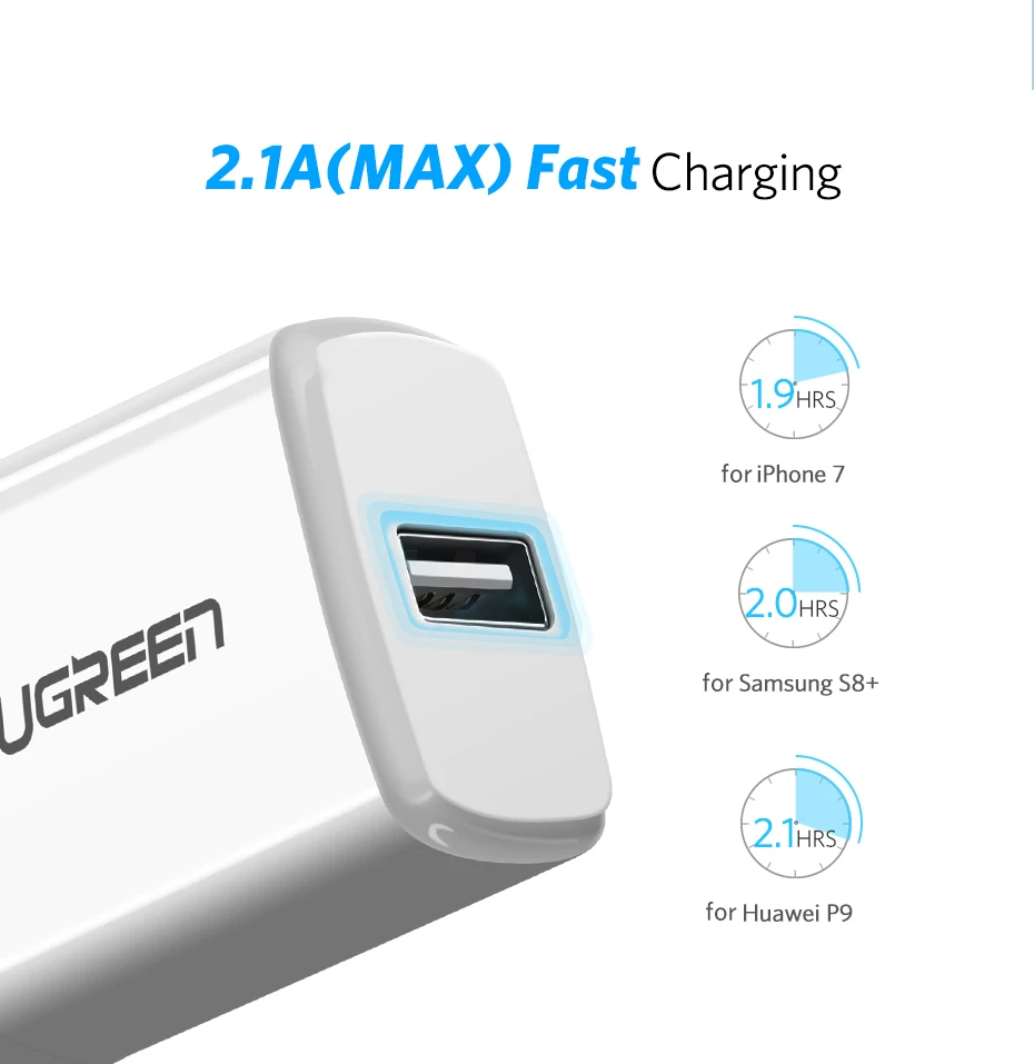 Сетевое зарядное устройство UGREEN ED011, USB Type-A, 10 Вт, 0.6A