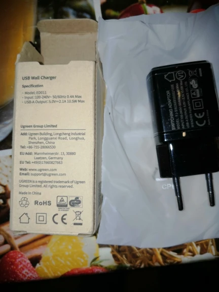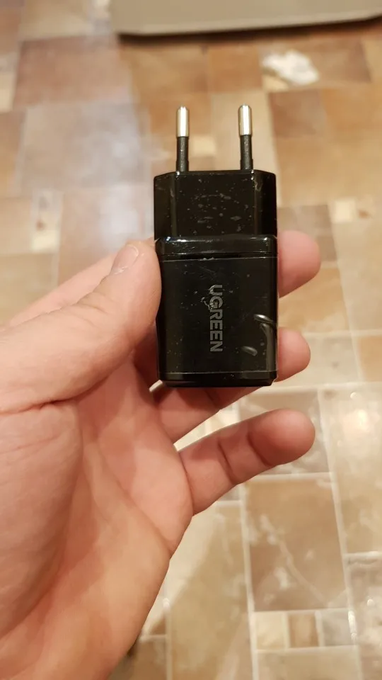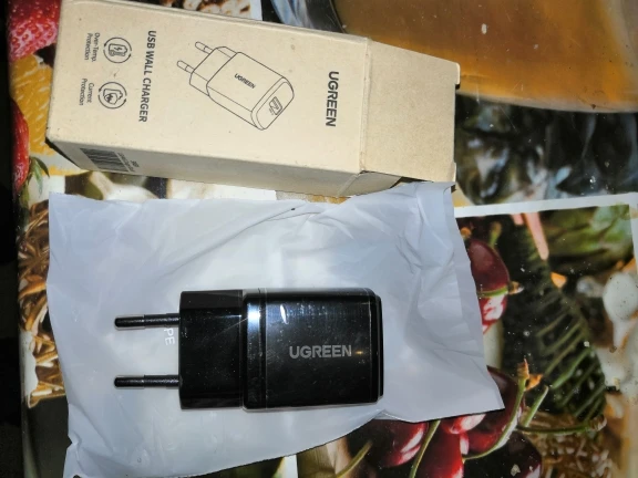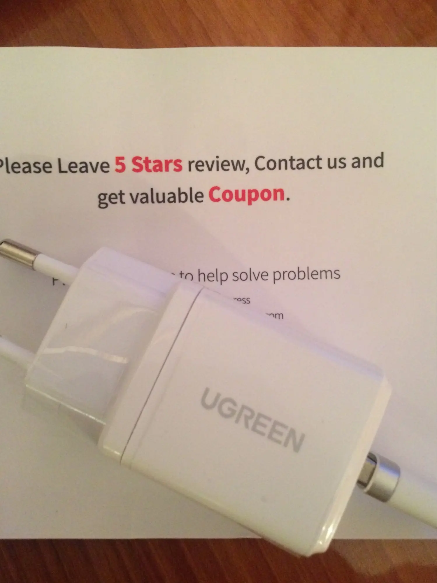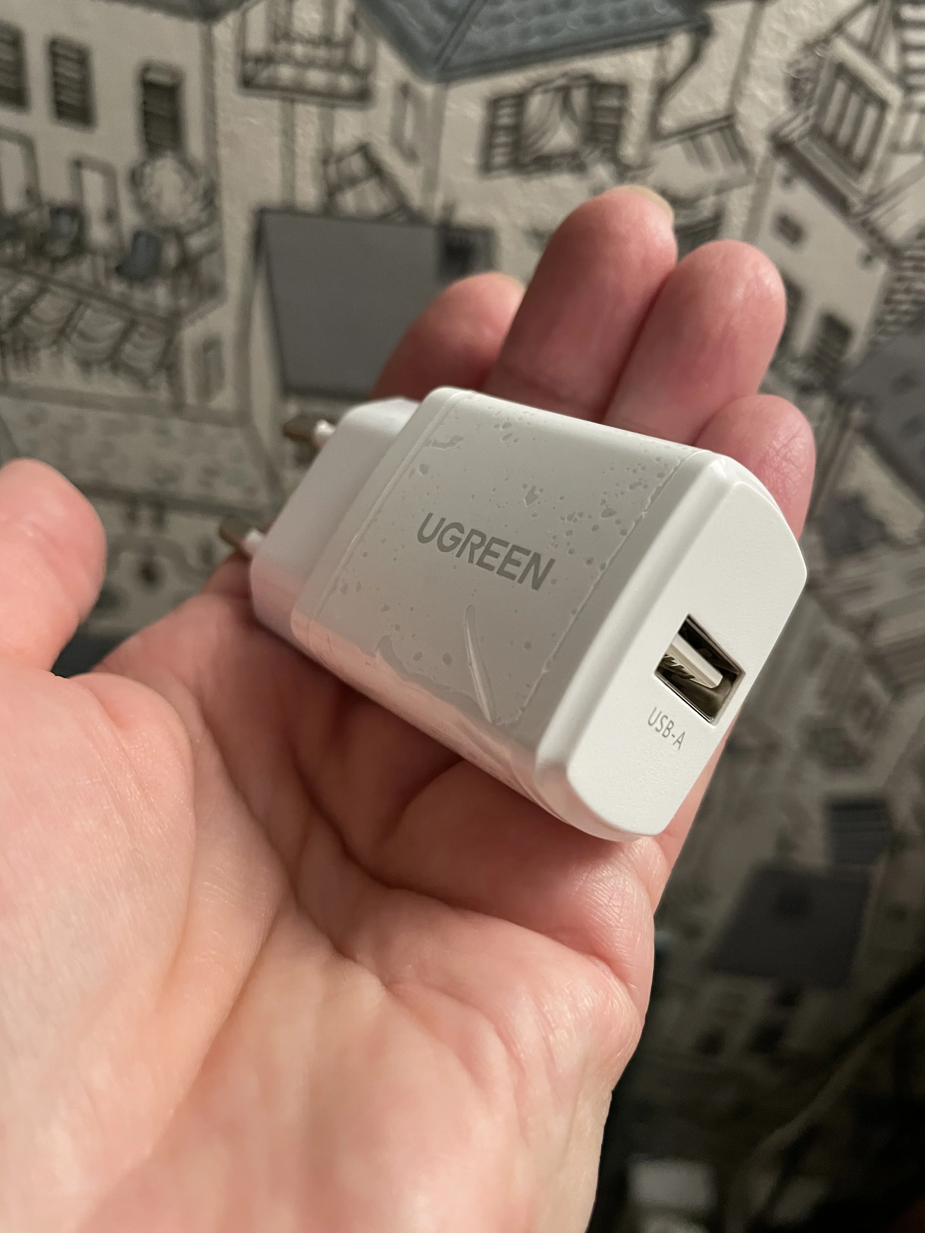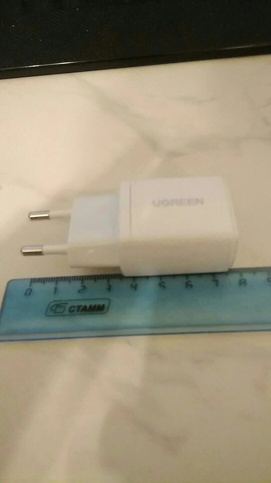 Описание точное, адаптер чуть меньше обычного, но это не критично.. Слегка нагревается, не сразу, посередине зарядки телефона... Кабель (любой) входит плотно в адаптер, но как то не до конца,на фото видно.. Продавец положил подарочек, спасибо.. Для обычного адаптера (не для быстрой зарядки! ) заряжает нормально.. Мне нравится фирма ugreen! Заказывала кабеля для телефонов так же.. Всегда упаковка на высоте.. Заказ в Латвию пришёл через 1,5 мес!