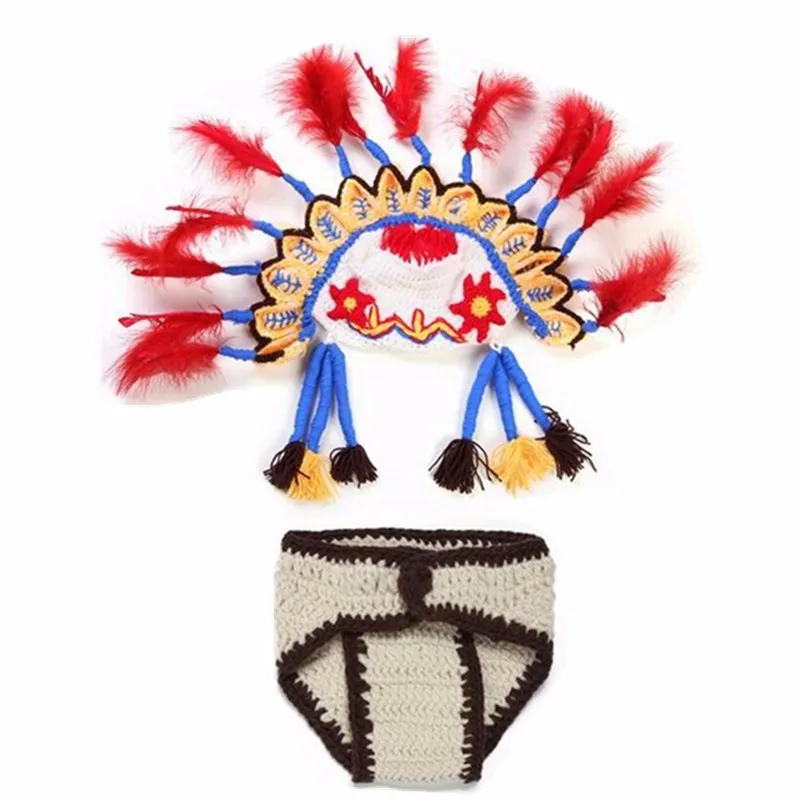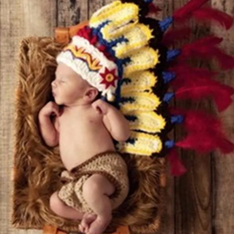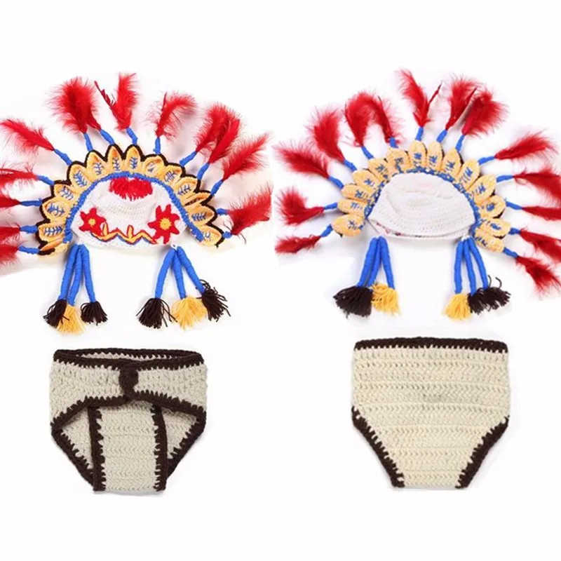 2 шт.компл. реквизит для фотосъемки новорожденных вязаная крючком одежда ручной работы набор индийский головной убор индийский стиль детский фото костюм