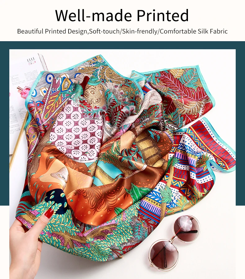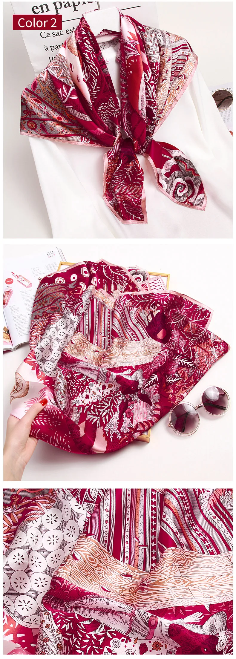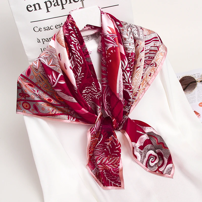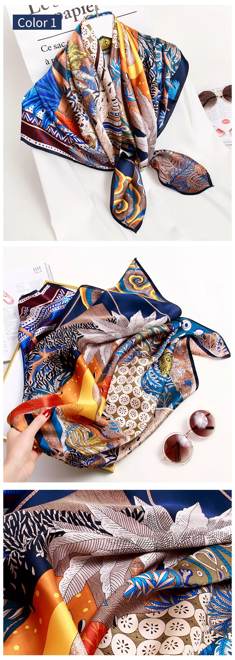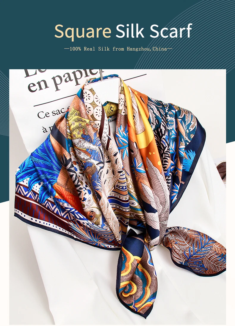 Квадратные шарфы из 100% шелка, женские накидки с принтом, шелк из Ханчжоу, бандана, платок, женский шейный платок, 14 мм платок из натурального шелка, 88*88 см