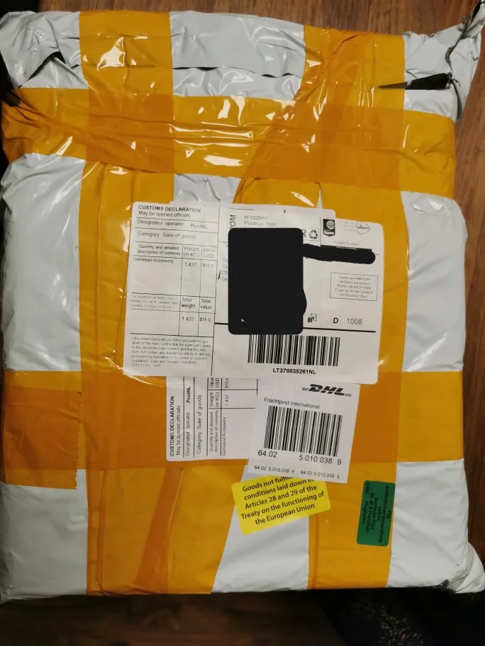 Он прибыл очень хорошо упакован и подарочный чехол для Nintendo switch с оригинальными. Очень рад.