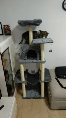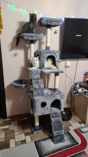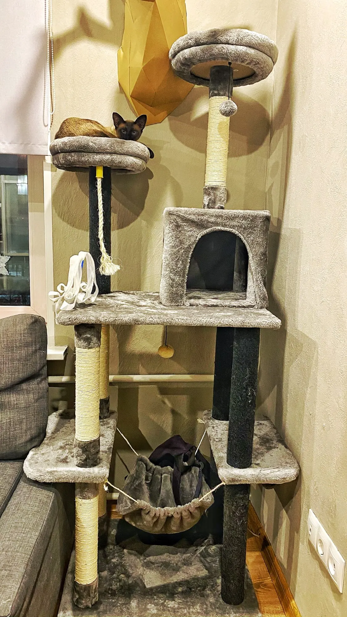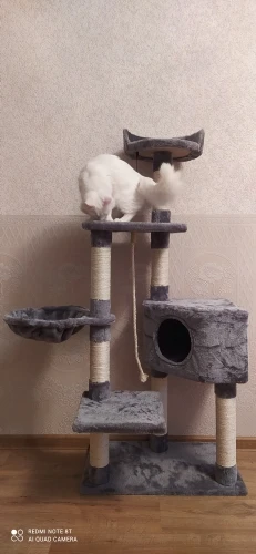 Мне как обычно пришёл товар с браком, но продавец компенсировал. Комплекс в целом интересный, но у меня до этого был покупной в магазине столбик , и его качество обивки и качество столбца об который надо драть когти на много лучше. Так же указано, что гамак 40 см, но он 30 см, я дополнительно на озоне купила гамак 40 см, так как у меня их двое. За 9500 т.р. дорого, за ту сумму которую он вышел мне отлично. Теперь хочу сама сделать продуманный и более качественный комплекс . И выйдет дешевле и больше и надежнее будет. Но это конечно лишние заморочки, но моя любовь к моим кошкам зашкаливает, по этому когда я для них что то делаю получаю нереальный кайф:)