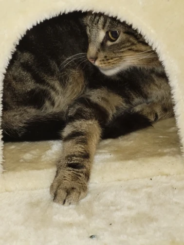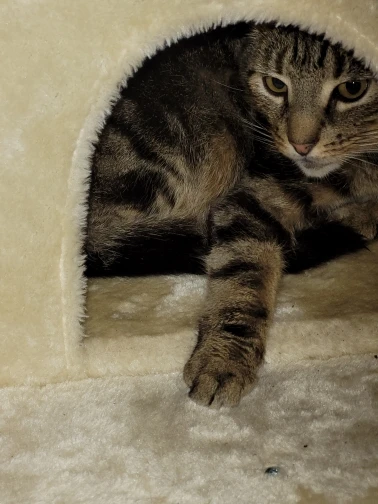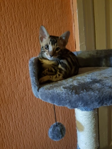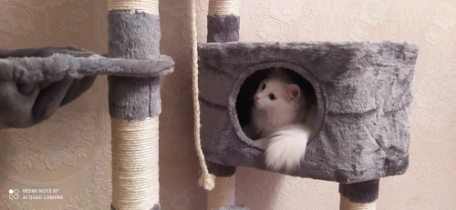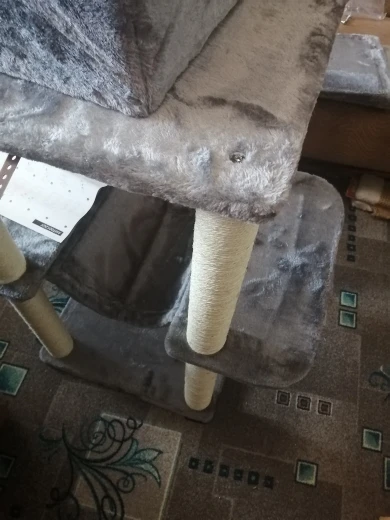 заказал домик котёнку. если ему показывать то он начнет пользоваться. если нет то будет игнорировать (имейте ввиду это вы его воспитатель). по поводу товара: -собирается легко, есть чертёж, весь крепеж и шестигранный ключ в пакетике. -не очень нравится что отверстия в ДСП не зинковано (шляпка не утоплена получается) поэтому я сделал что смог чтобы спрятать их под ткань. -затягивать нужно сильно иначе всё болтатеатся, но и перетянуть боязно (ДСП всё же крошится, а резьба нарезана в пластике). тут с умом надо. -самый большой минус: неустойчивость конструкции. ткань на основание натянута и собрана снизу. и получается вместо того чтобы стоять на полу всей площадью основания, домик качается на валиках ткани по периметру. это нужно самому исправить или притулить к стенка (я пока к стене прислонил) коту не очень комфортно когда оно качается. " качество ткани нормальное. боюсь не очень на долго, но не дешман. " когтеточка на каждом столбе но коту не интересно пока.