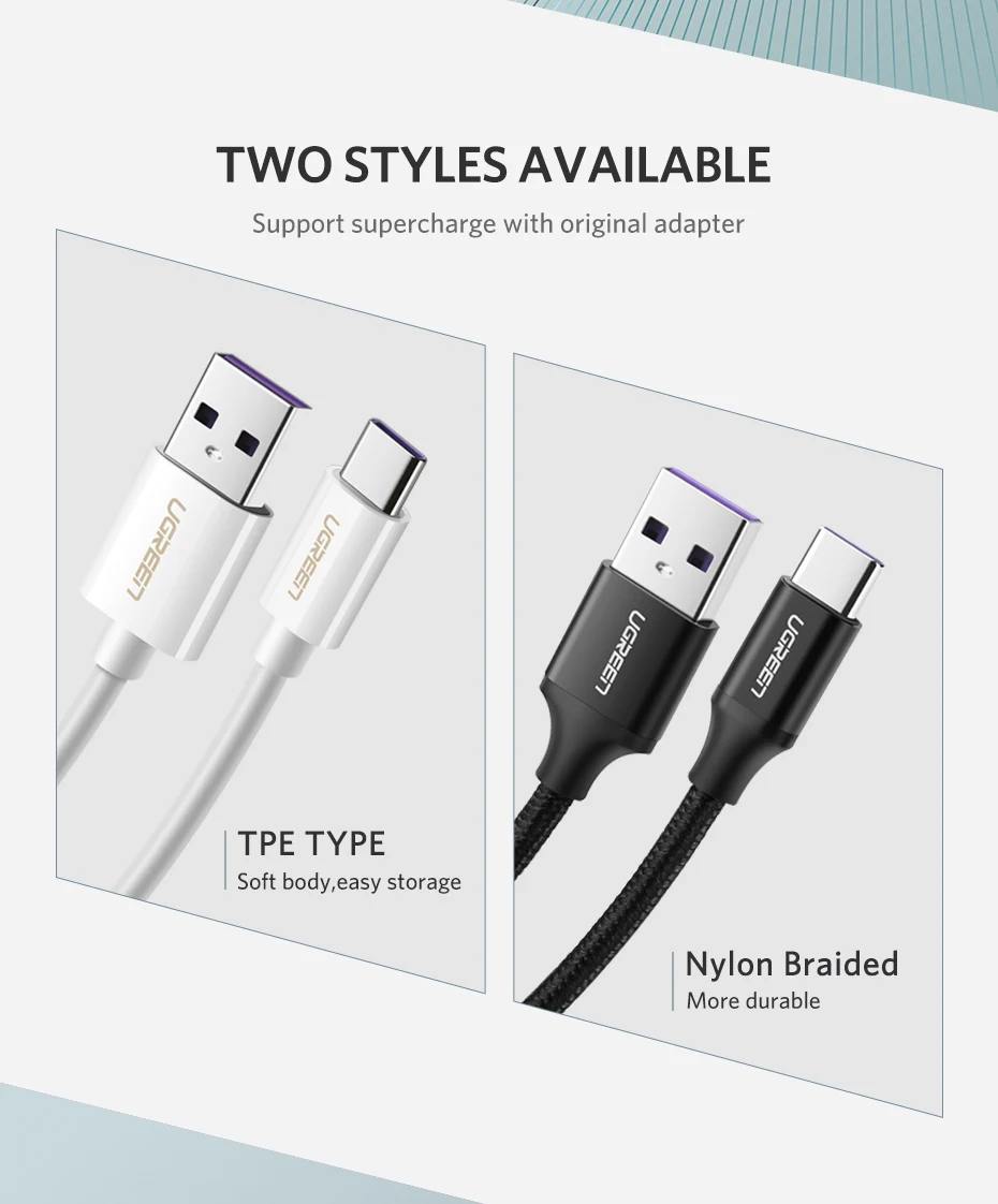 Кабель для зарядки UGREEN, USB Type-A Type-C, 5A, 40Вт, 0.25м-3м