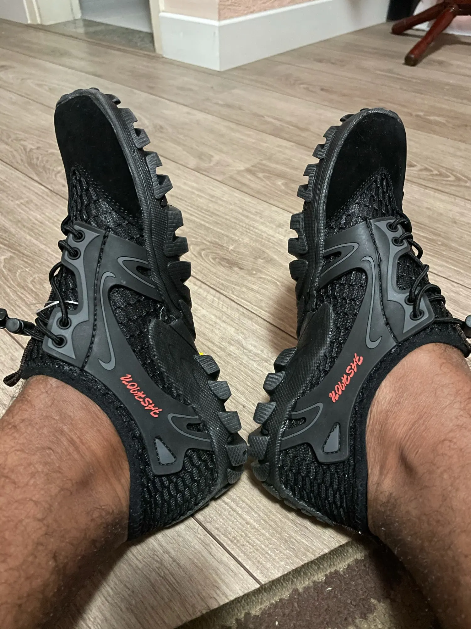 Хорошие кроссовки, как было указано ранее, похоже, были сделаны до конца! Хорошее сцепление и удобство. Единственная проблема была в том, что он был туго, купил второй стол, но затонял... так что купите больший размер!