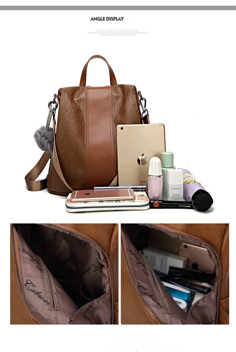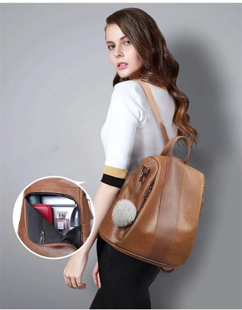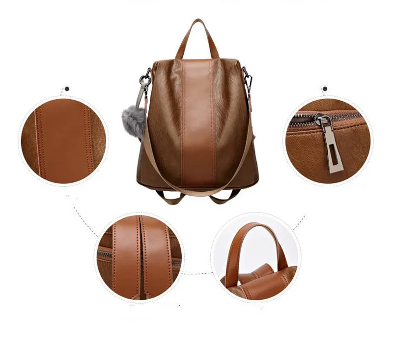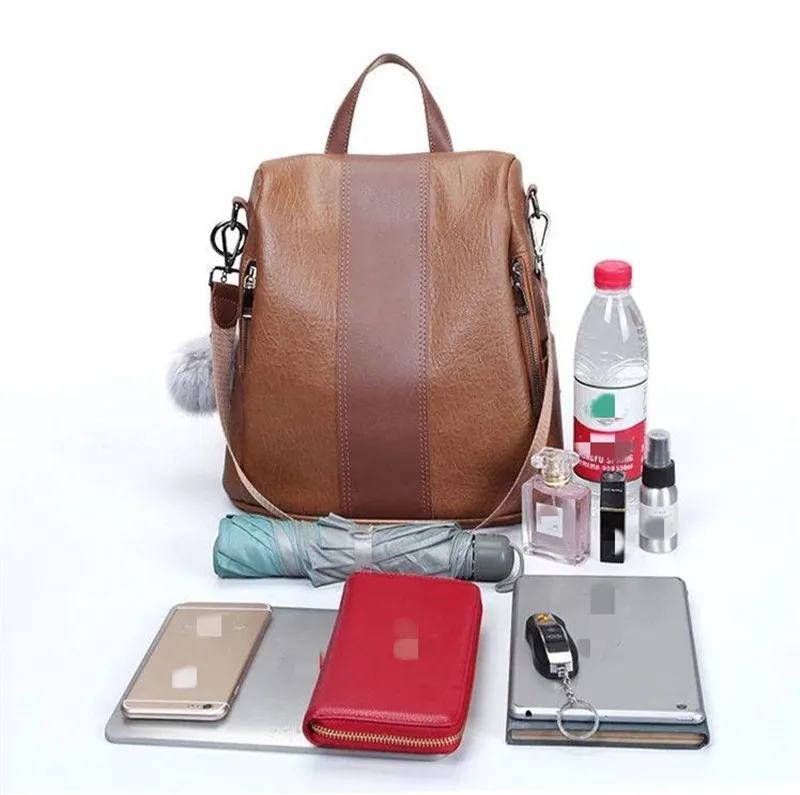Женская сумка, женский рюкзак, Классические рюкзаки из искусственной кожи с защитой от кражи черного и коричневого цветов, многофункциональная модная сумка через плечо для дам