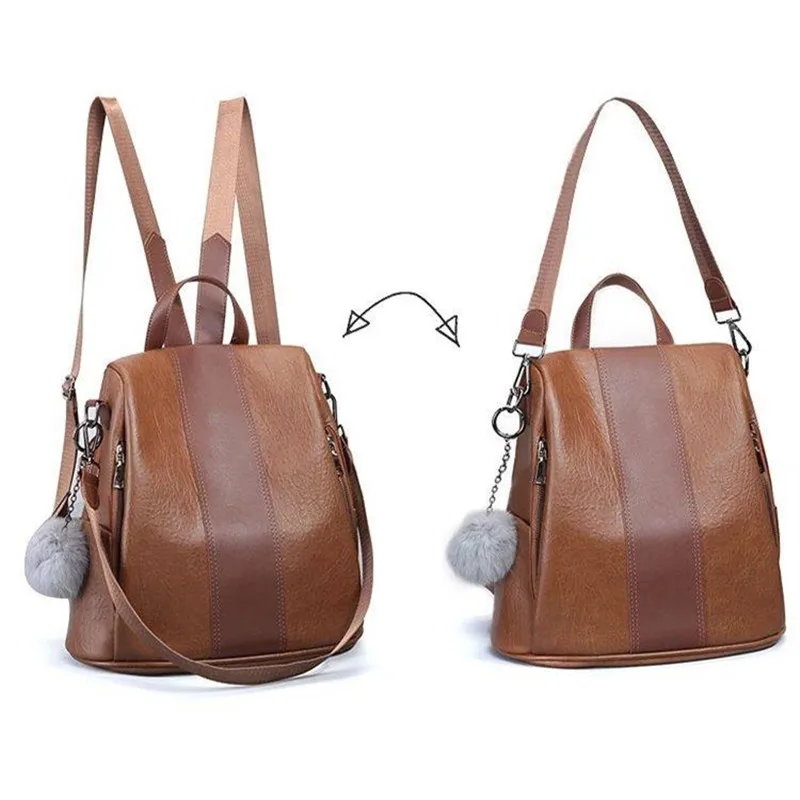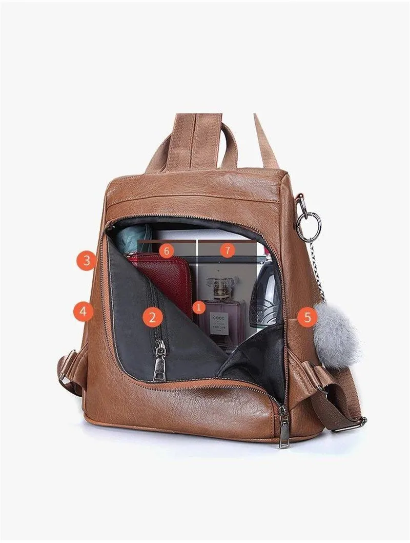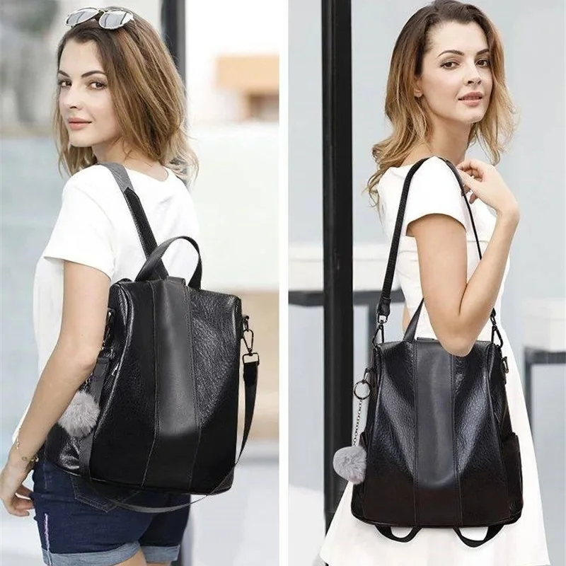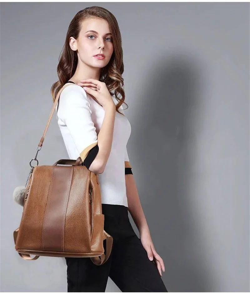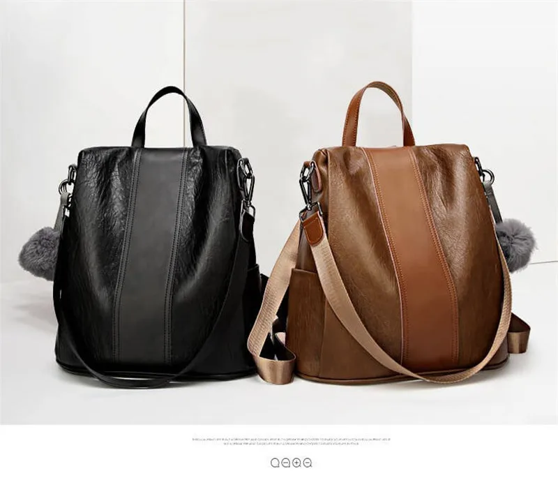Женская сумка, женский рюкзак, Классические рюкзаки из искусственной кожи с защитой от кражи черного и коричневого цветов, многофункциональная модная сумка через плечо для дам