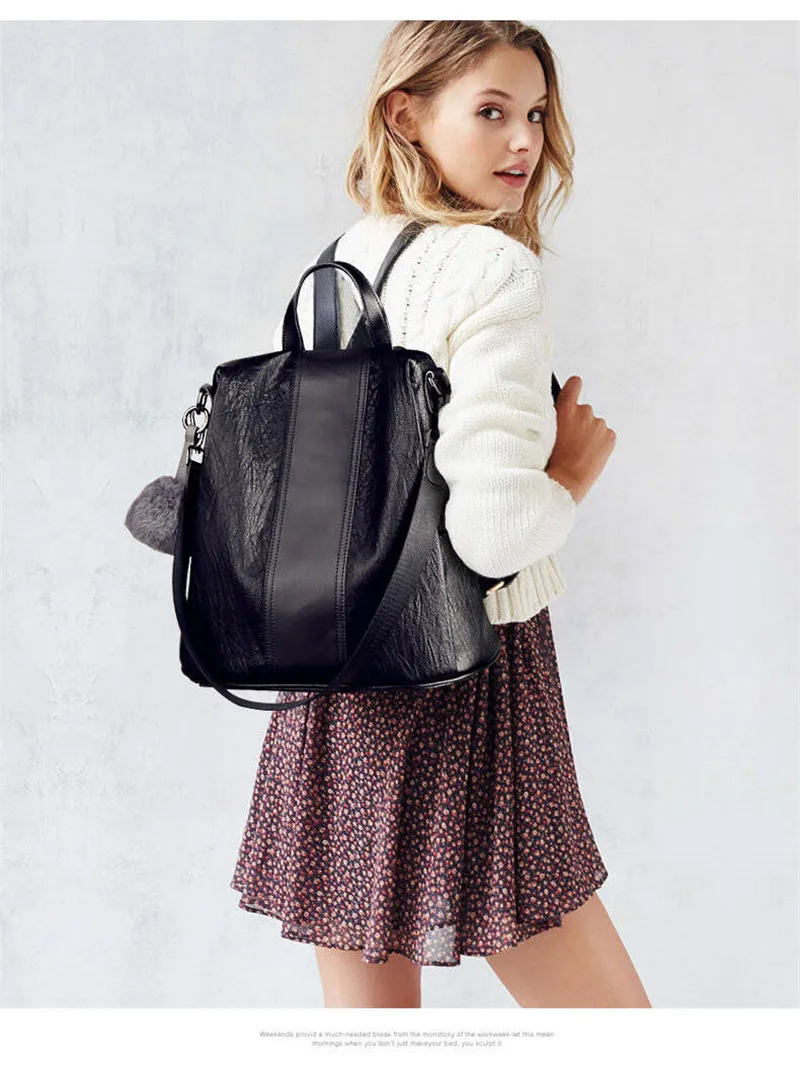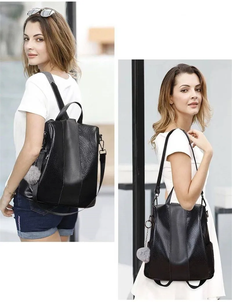 Рюкзак с защитой от краж для женщин, Классические многофункциональные модные дамские сумочки из искусственной кожи черного и коричневого цвета с защитой от краж