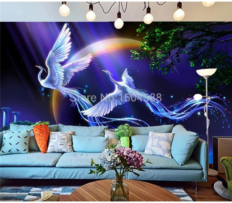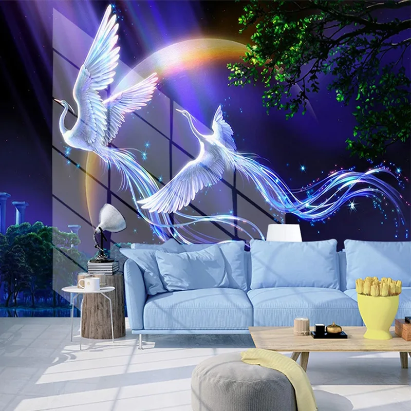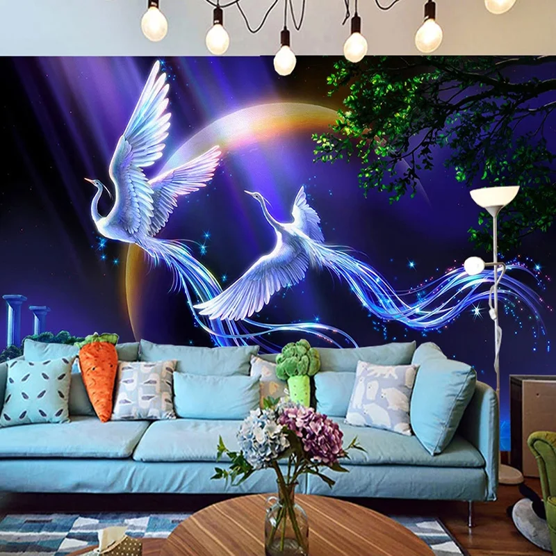 3D обои современный красивый пейзаж Павлин лунный свет фрески для детской спальни гостиной настенные бумаги для стен 3 D Фреска