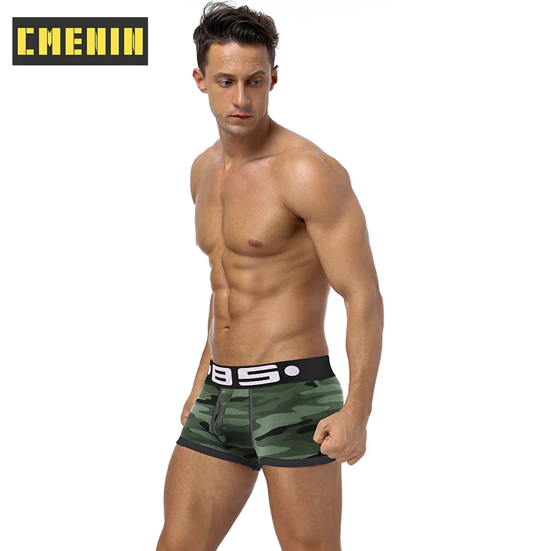 Мужские хлопковые трусы-боксеры с низкой талией и надписью