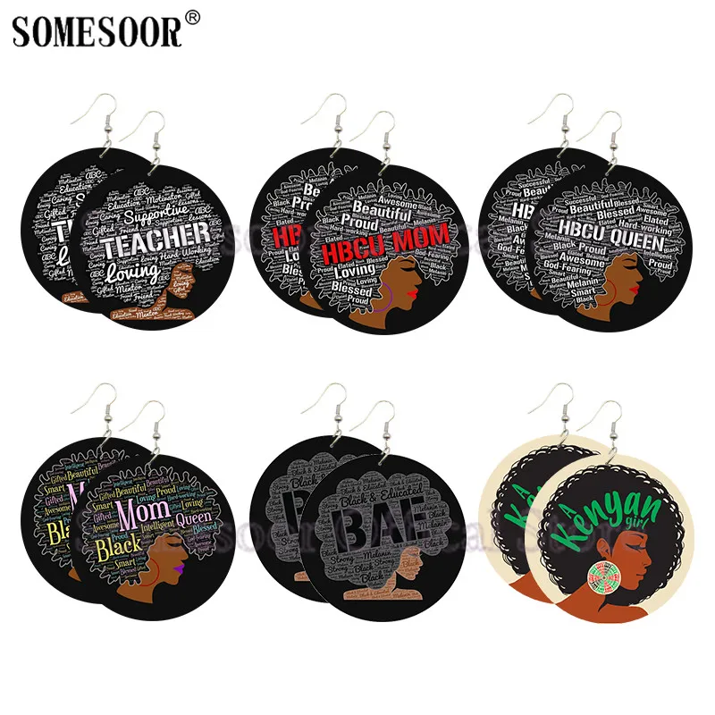SOMESOOR красивые деревянные серьги-подвески HBCU MOM Queen BAE в афро-стиле с черными высками меланина Художественная печать для женщин Подарки