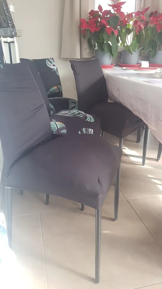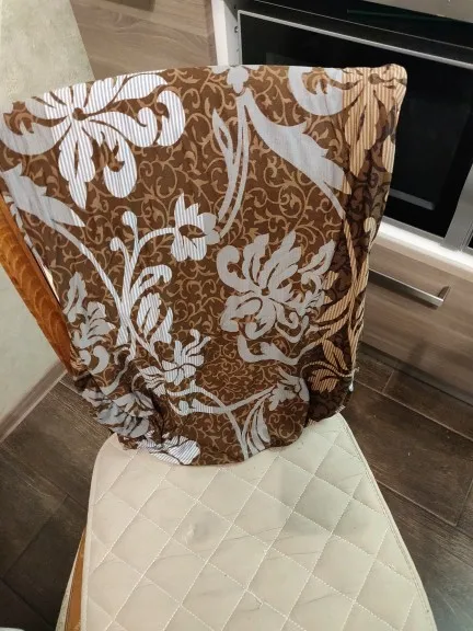 Чехлы супер! Из спандекса, хорошо тянуться, налезут на любой стул, ещё даже остался запас. Надеваются легко, смотрятся красиво. Доставка быстрая 10 дней. Огромное спасибо!