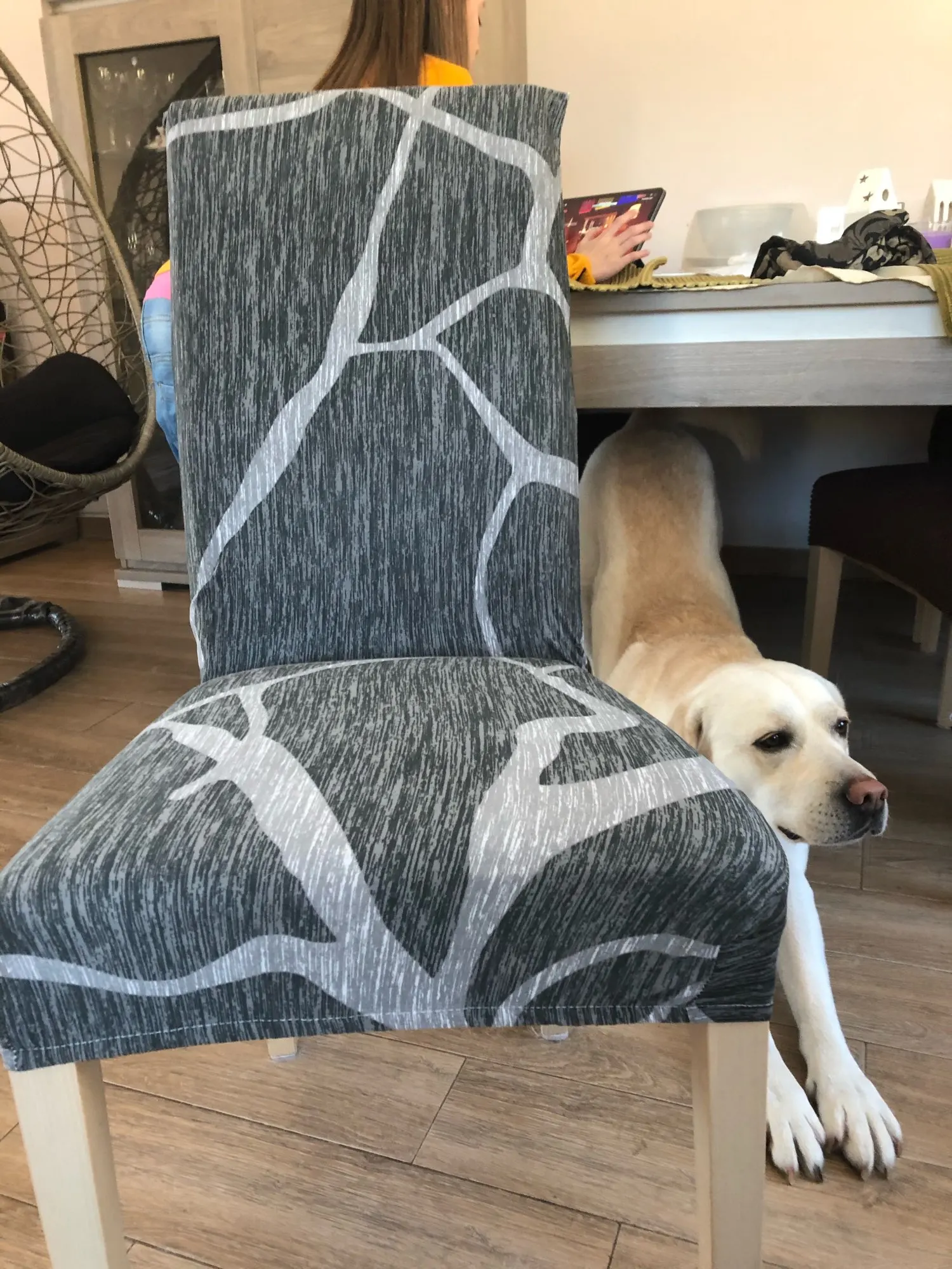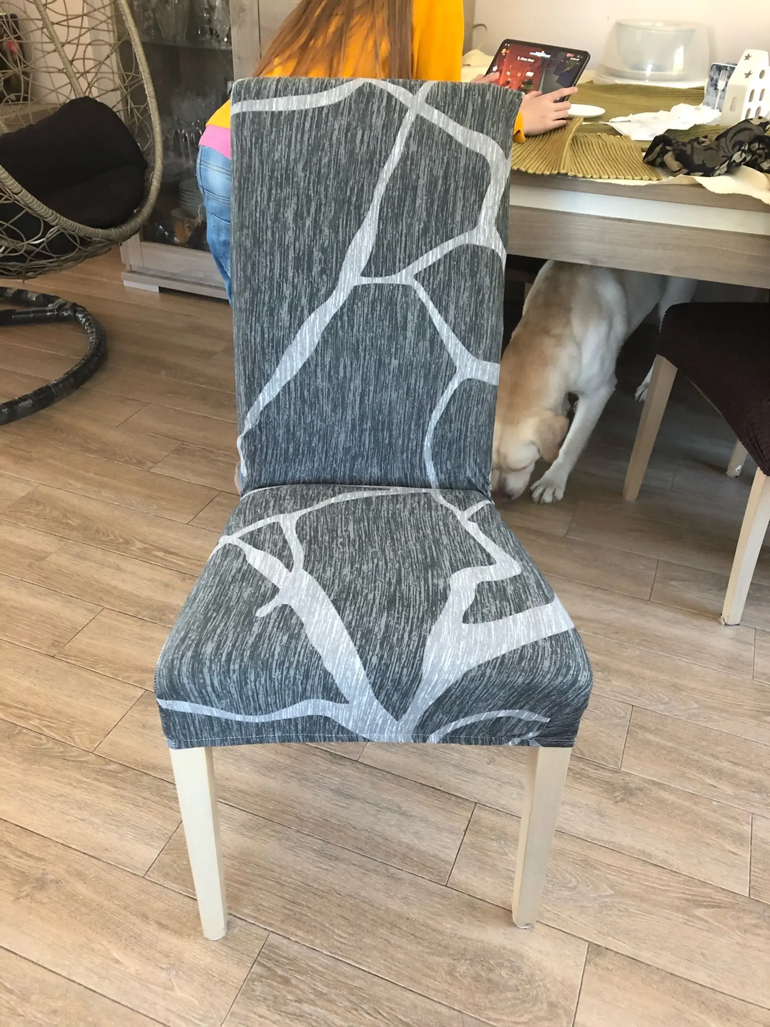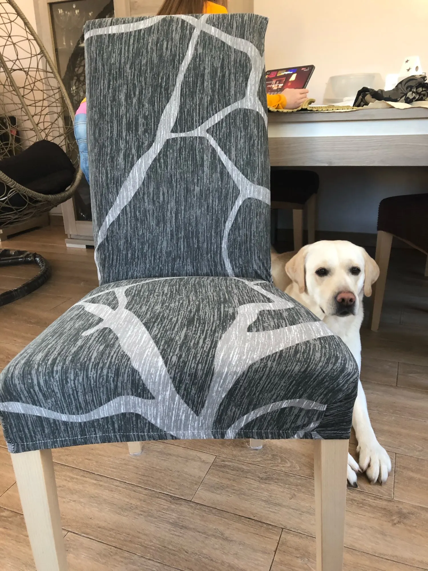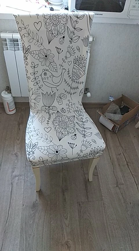 Я доволен покупкой. Спасибо, что продавец выглядит хорошо, чтобы найти что-то на эластичной ткани, которая легко покрывает вас за стул, может натянуть и очень примерить форму стула