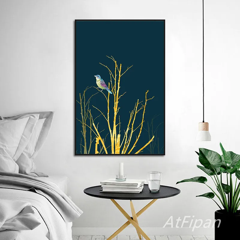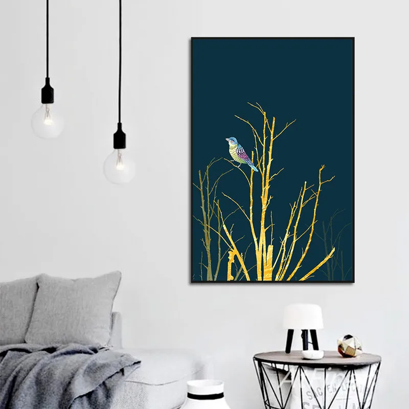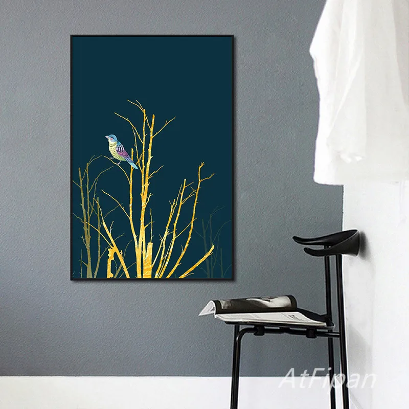 Современный минималистичный абстрактный плакат золотой цветок и птица холст картина для гостиной прохода вход украшение для дома живопись