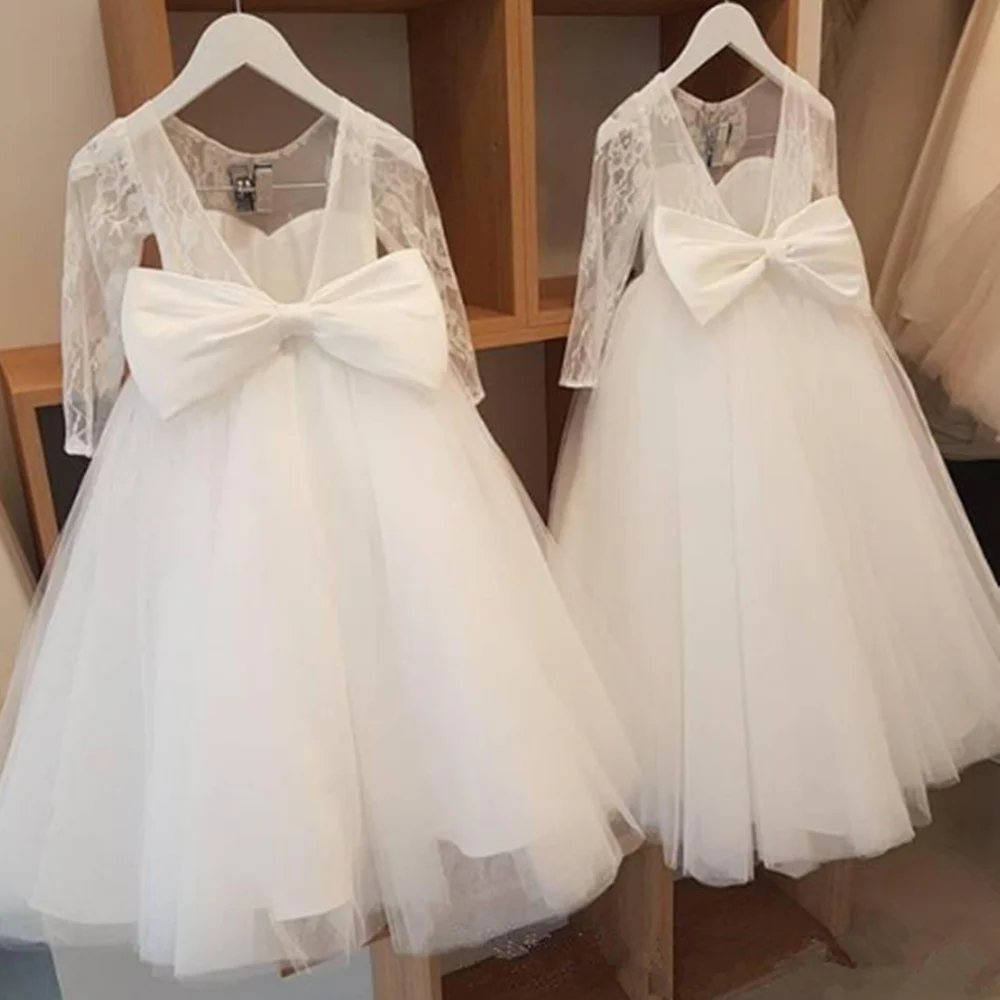 Белые Платья с цветочным узором для девочек на свадьбу; Кружевное платье с круглым вырезом и открытой спиной для девочек; Торжественное платье для первого причастия