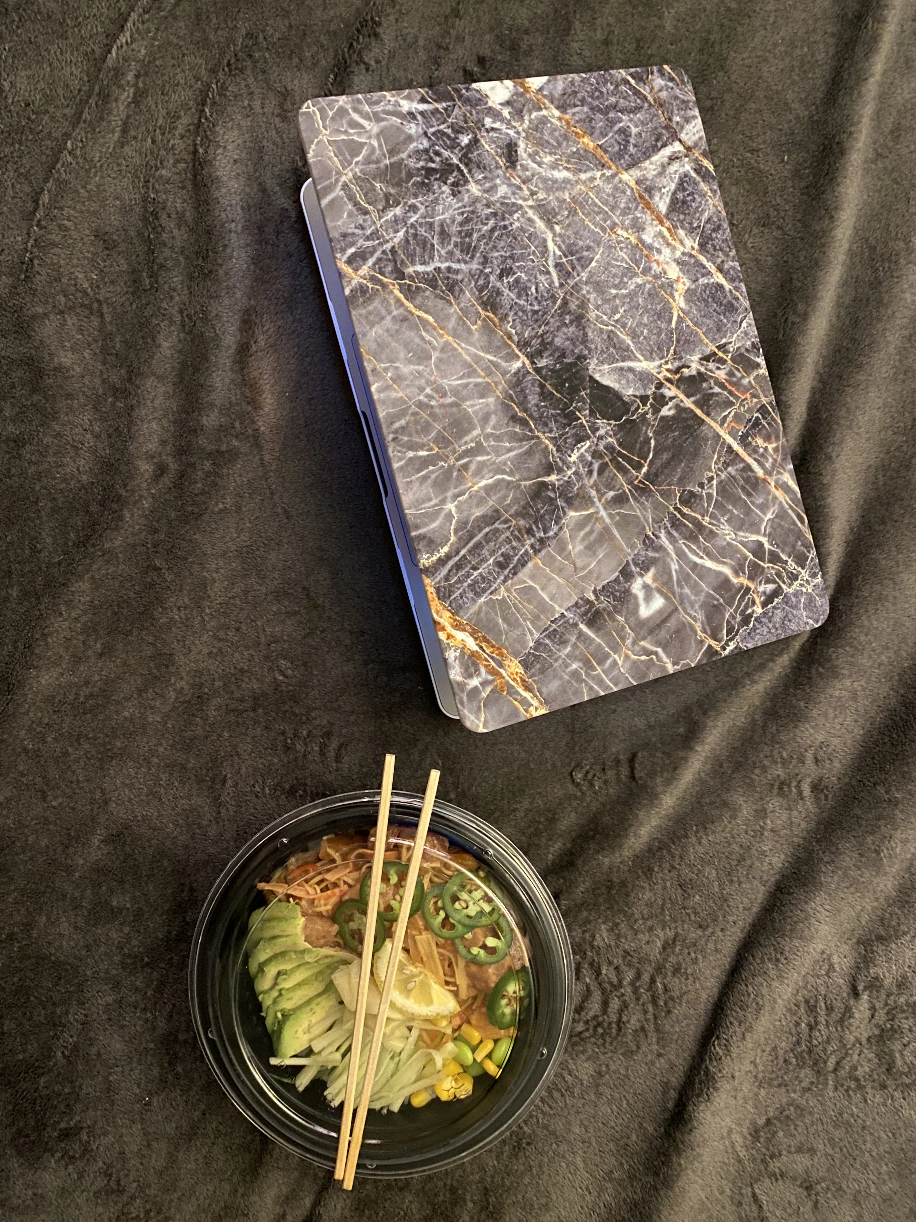 Чехол красивый, приятный, + была защита для клавиатуры.
