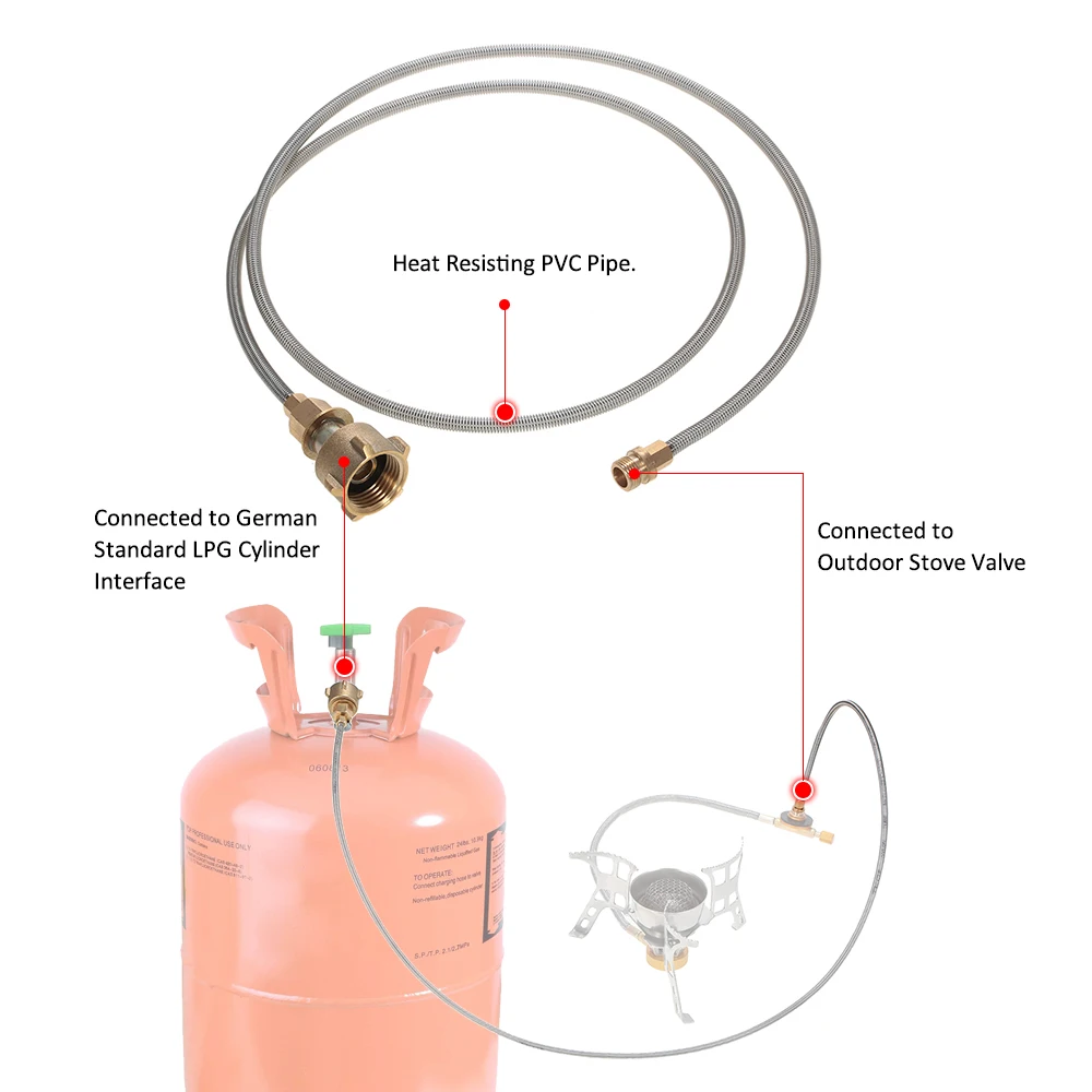 Поставляется с адаптером для заправки, вы можете повторно использовать плоский резервуар и не нужно переносить тяжелый баллон LPG (немецкий стандарт) туда для пикника или барбекю.