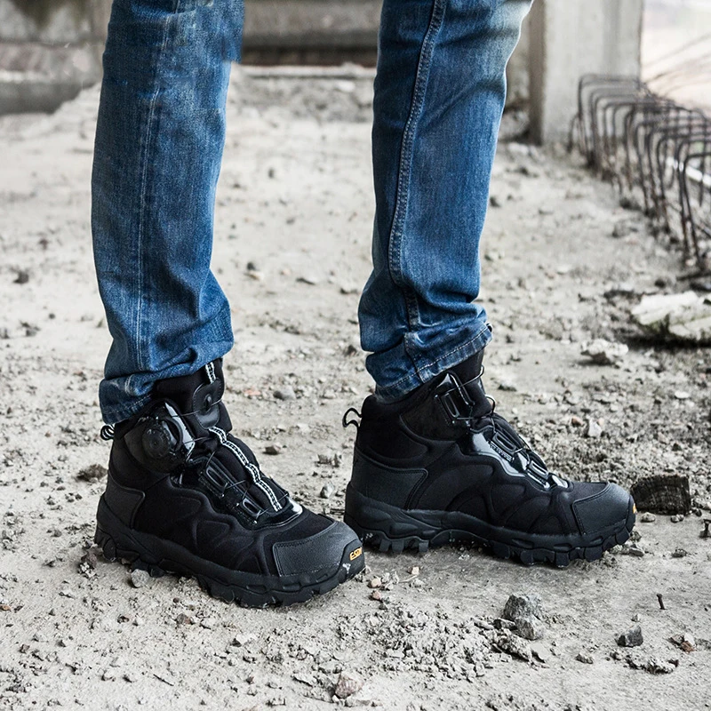 Мужская Профессиональная Тактическая Военная походная обувь с автоматической шнуровкой, походная обувь для улицы, быстрого туризма, повседневные спортивные ботинки средней высоты