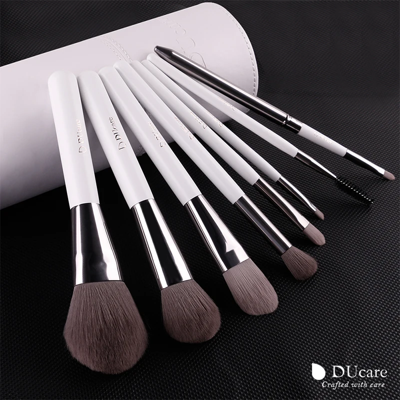 Набор профессиональной косметики DUcare, 8 шт., кисти для макияжа, высокое качество, синтетические волосы, натуральная деревянная ручка с белым держателем кисти