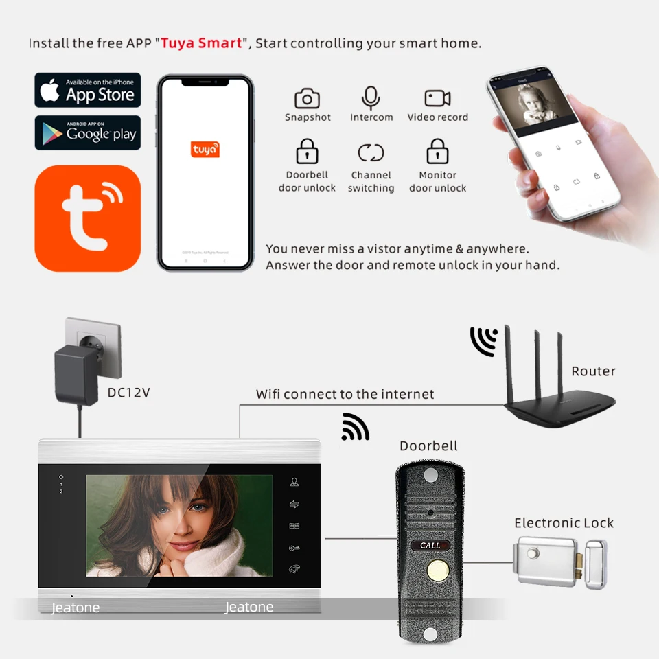 Обратите внимание, что Wi-Fi система видеодомофона не означает, что вам не нужен провод. Монитор поддерживает беспроводное подключение к Wi-Fi, но внутренний монитор и дверной звонок проводной, что гарантирует мощность, видео работает стабильно, и вы можете продлить расстояние