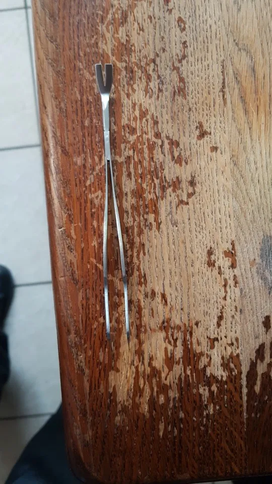 добротный инструмент, с одной стороны пинцеты, с другой рогатка для выкручивания клеща, в кожаном чехле. не маленькая см около 15 будет, но удобная. Рекомендую