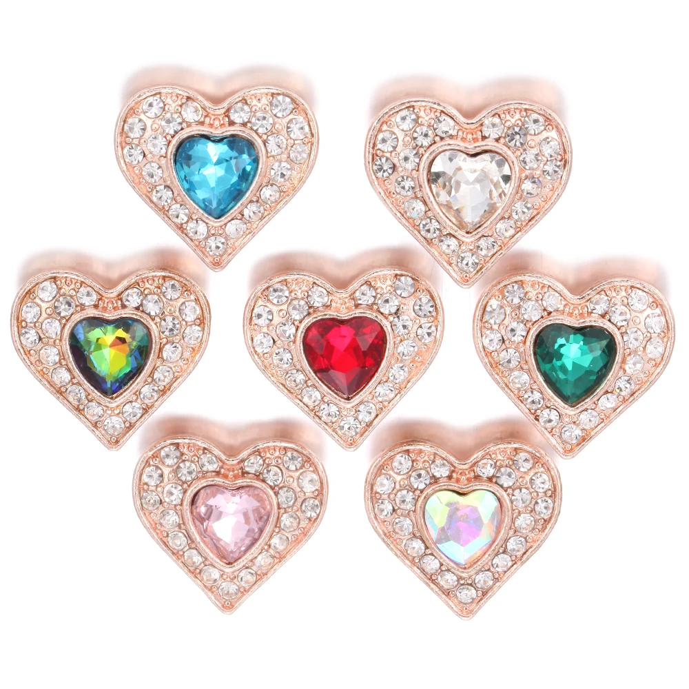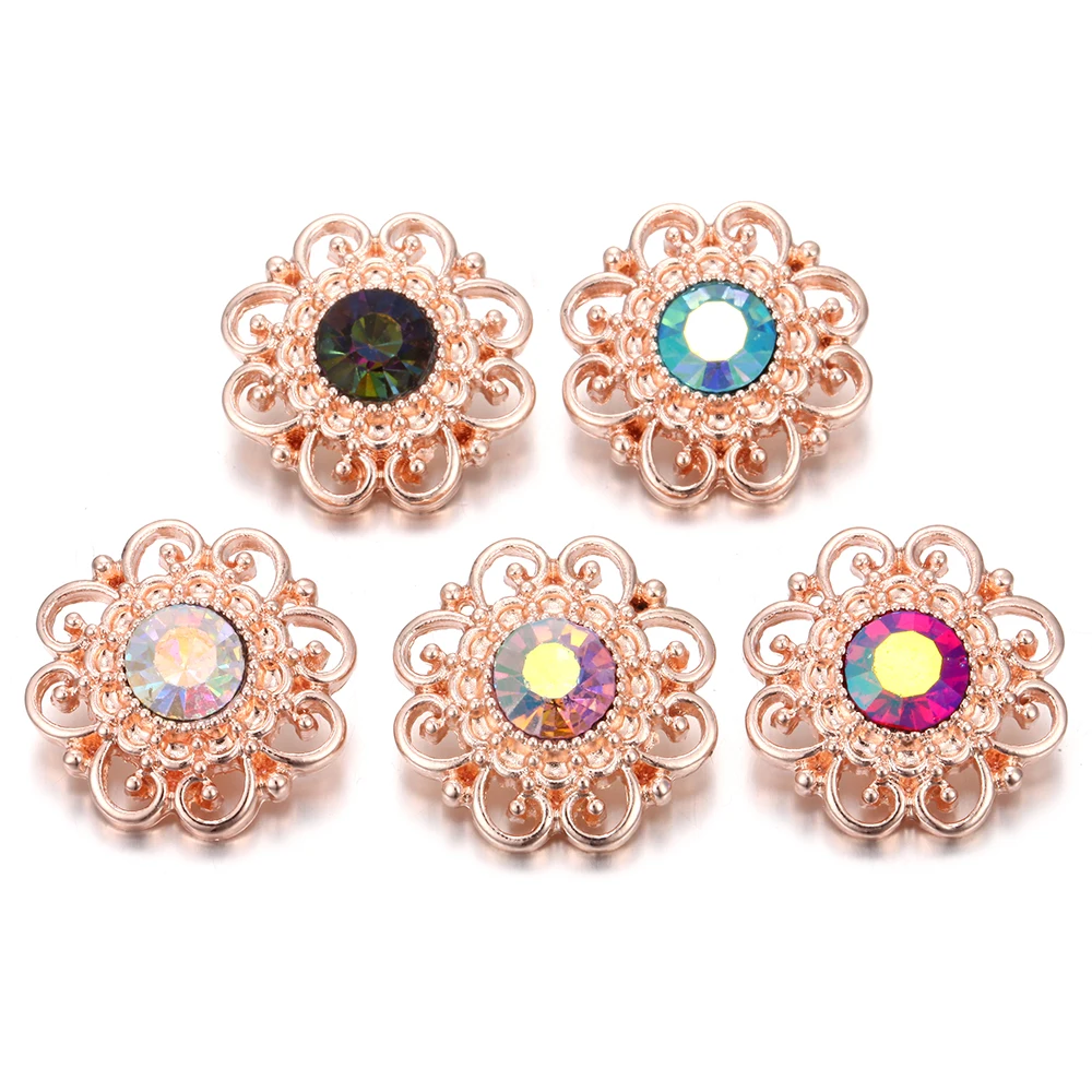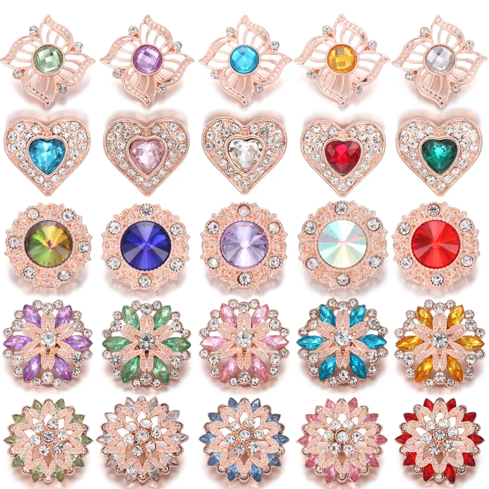 6 шт.лот 2020 новейшие застежки ювелирные изделия Смешанное розовое золото горный хрусталь любовь сердце цветок 18 мм кнопки для застежки браслета ожерелья