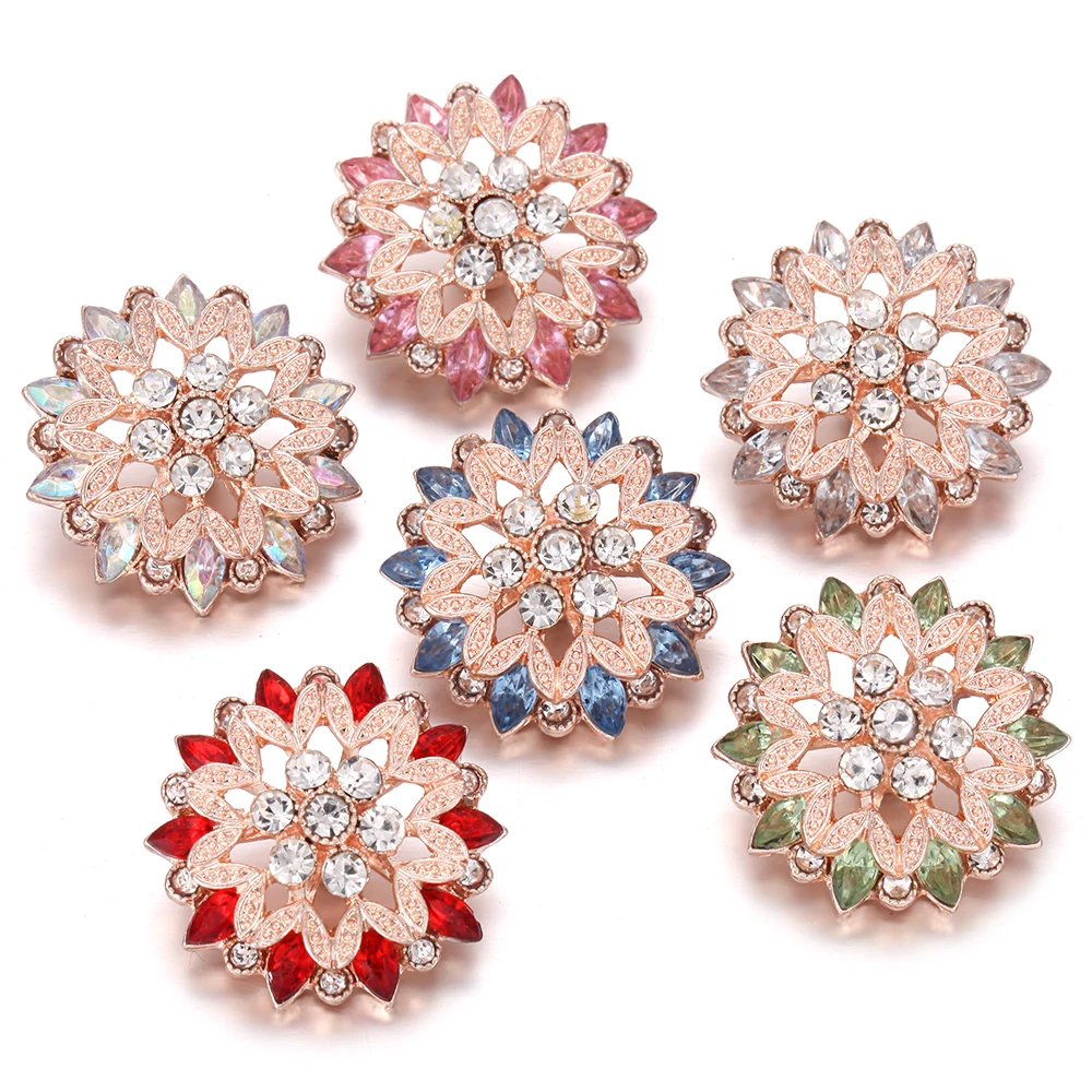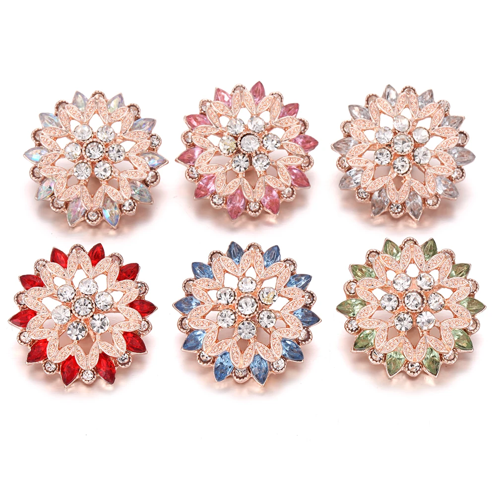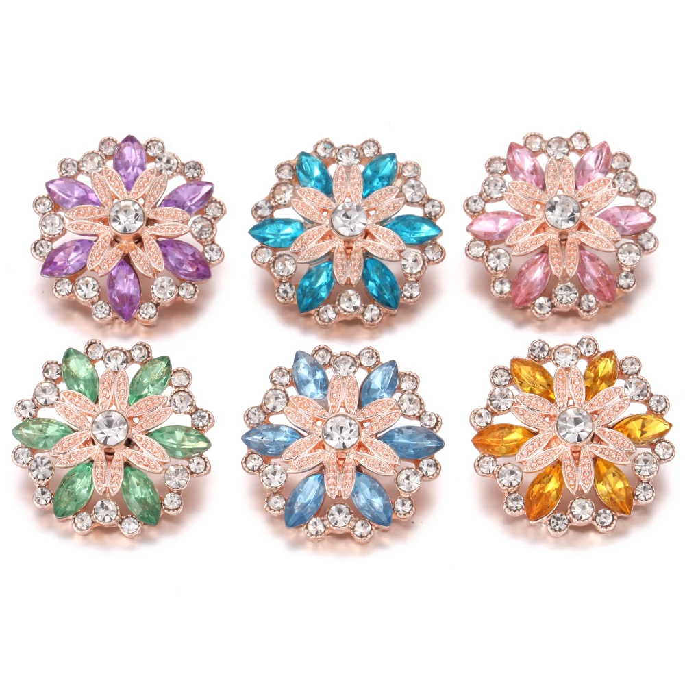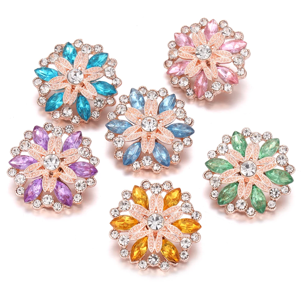 6 шт.лот 2020 новейшие застежки ювелирные изделия Смешанное розовое золото горный хрусталь любовь сердце цветок 18 мм кнопки для застежки браслета ожерелья