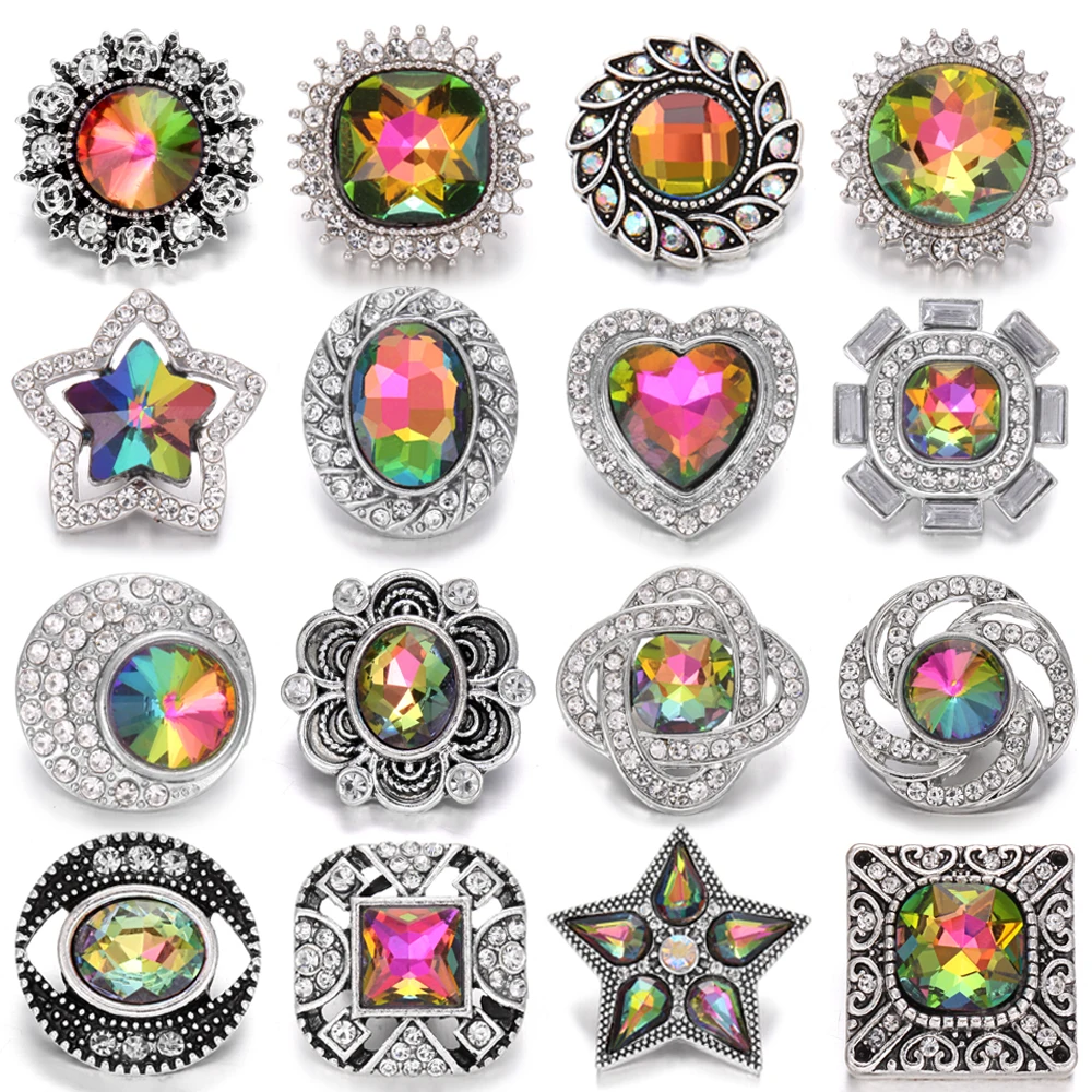 6 шт.лот Новые 18 мм кнопки для ювелирных изделий Цветные Кристаллы горный хрусталь цветок кнопки подходят для браслета сменные украшения