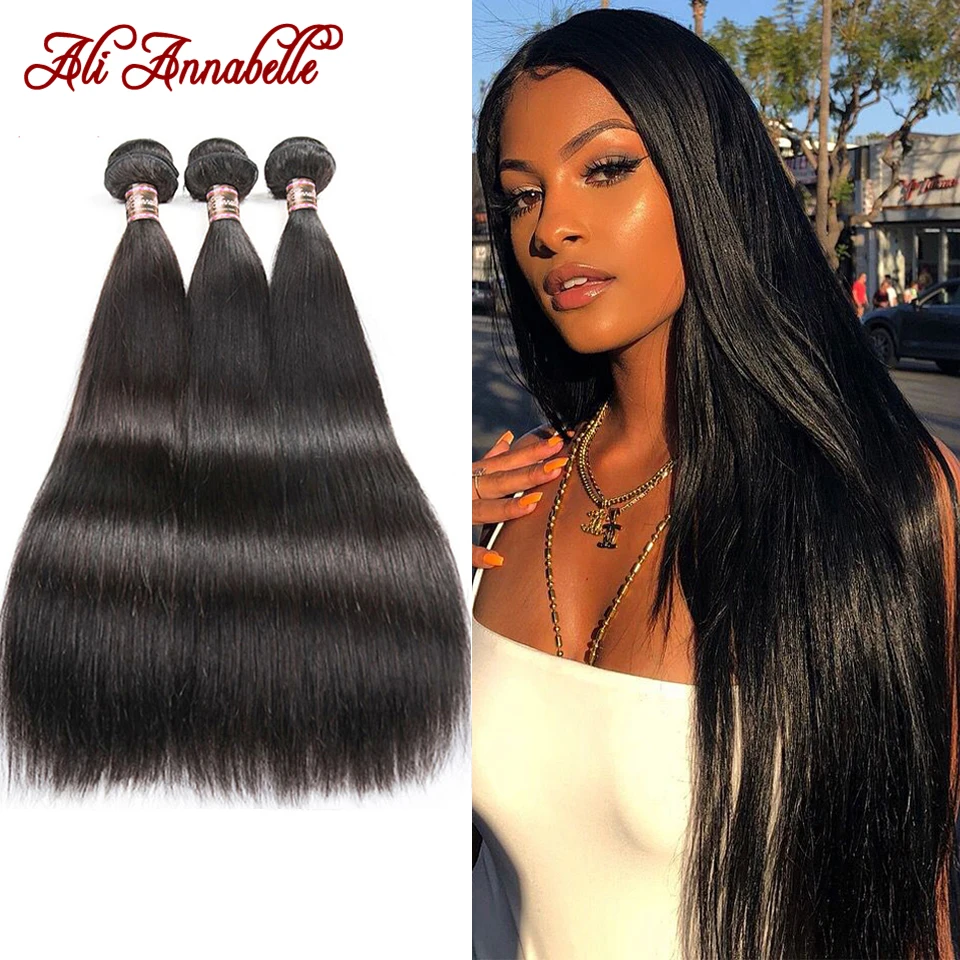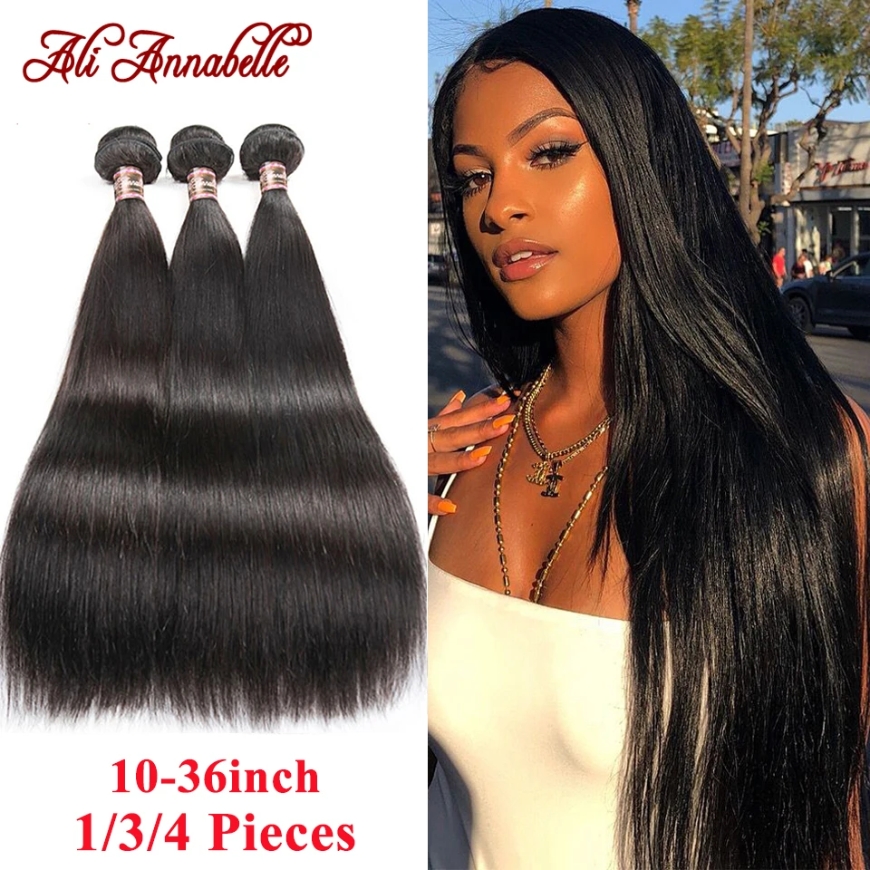 Перуанские прямые пучки волос 1/3/4 шт. прямые человеческие волосы пучки 10-36 дюймов длинные волосы Али Аннабель Remy волосы для наращивания