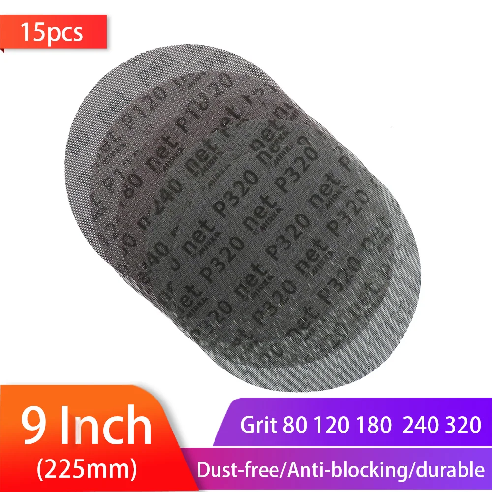 Беспылевые шлифовальные диски, 9 дюймов, 220 мм, антиблокирующие круглые абразивные наждачные диски с липучками, 80-320 Грит, бумага для украшения автомобиля (15 шт.)