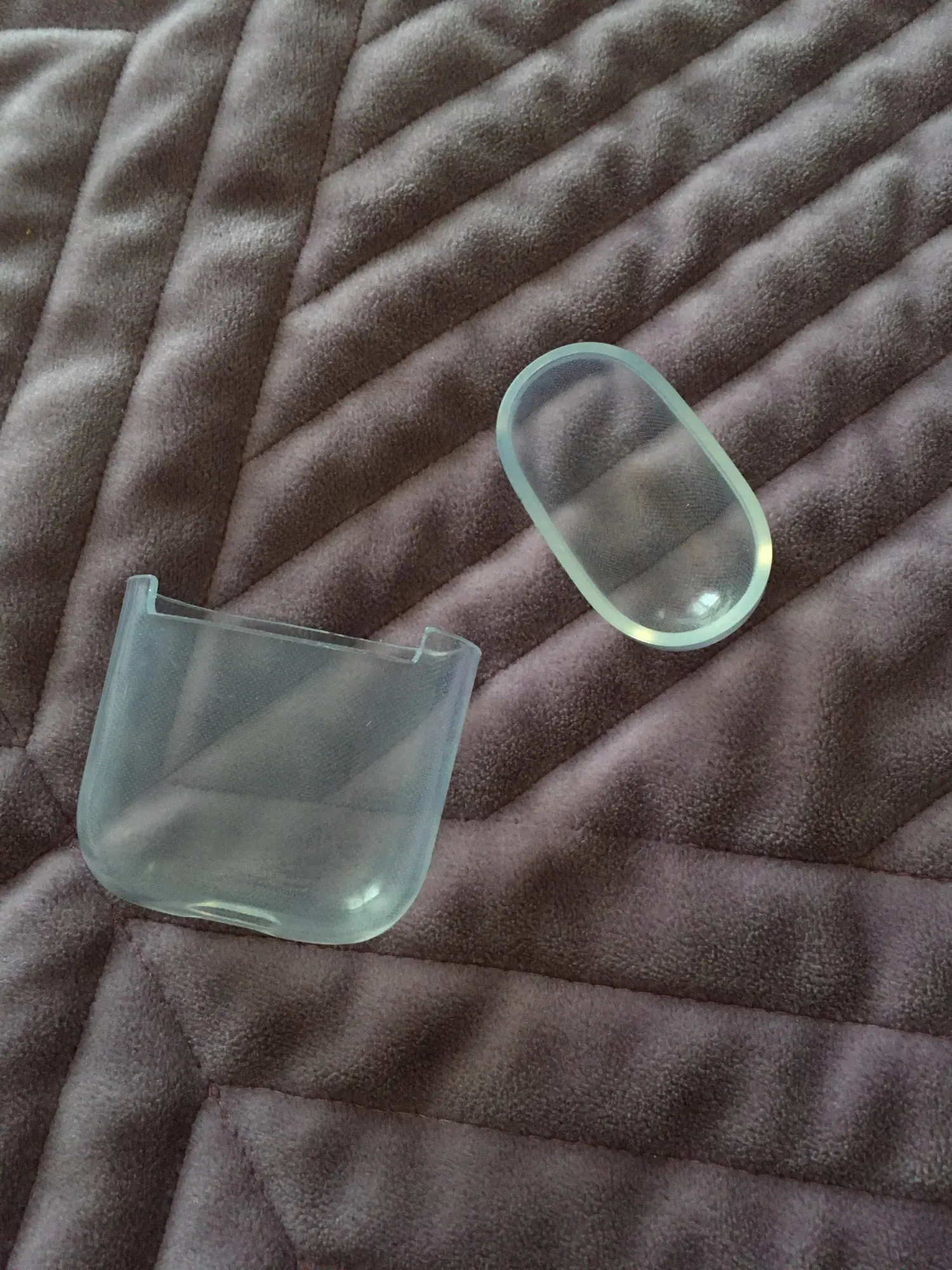 Товаром задоволений! Прийшло менше як за два тижні! Матеріал силікон мягкий! Все тримається надійно нічого невилітає! Присутні якісь плями коли вдягаєш його, на фото видно!