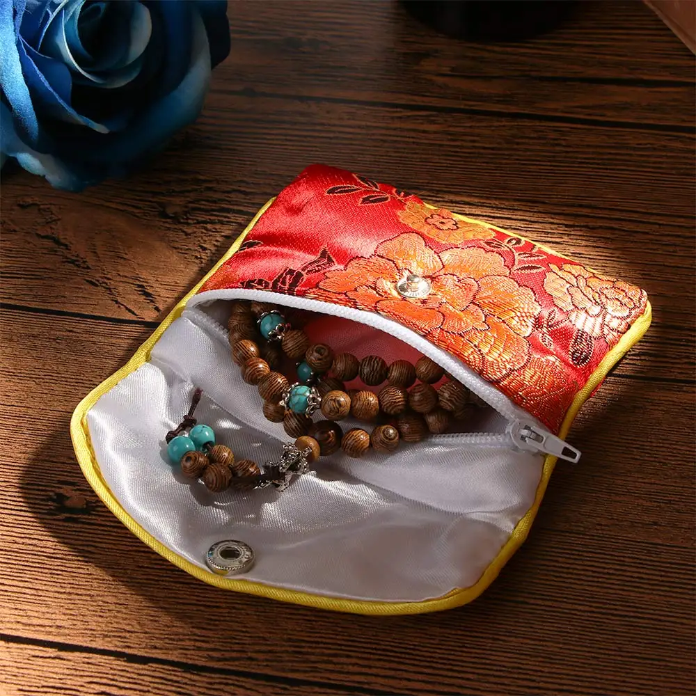 Кошелек ручной работы из парчи с шелковой вышивкой, мягкая маленькая подарочная сумочка на молнии для ювелирных украшений, сатиновый Кошелек для монет с защелкой