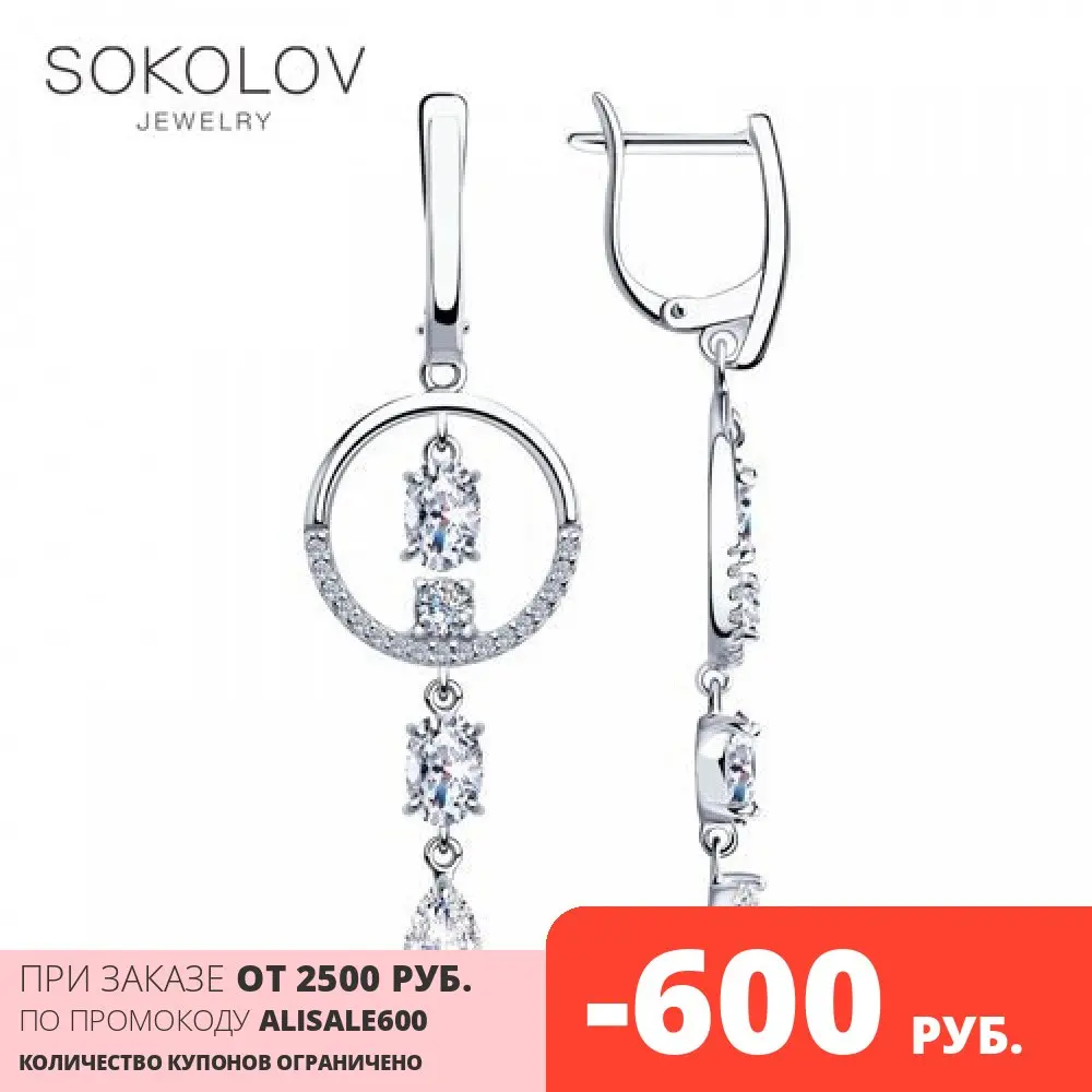 Серьги SOKOLOV из серебра с фианитами, Серебро, 925, Женские, Серьги 2022 тренд, Оригинальная продукция