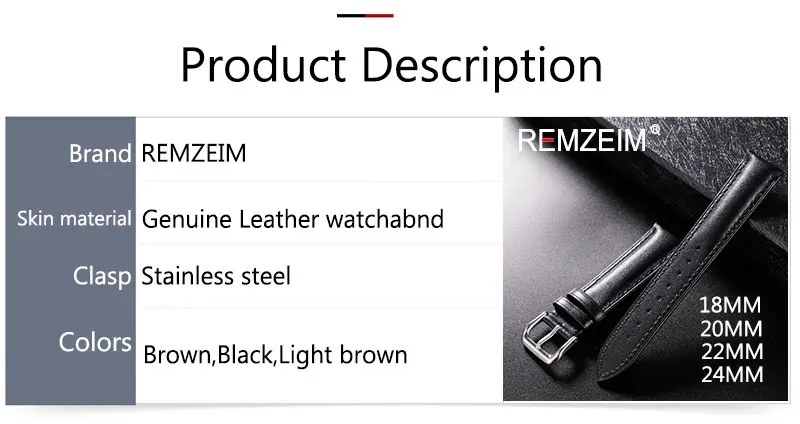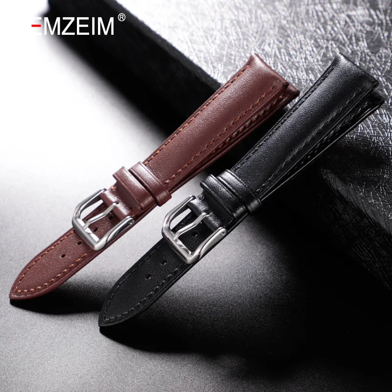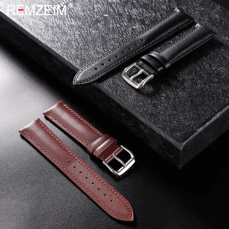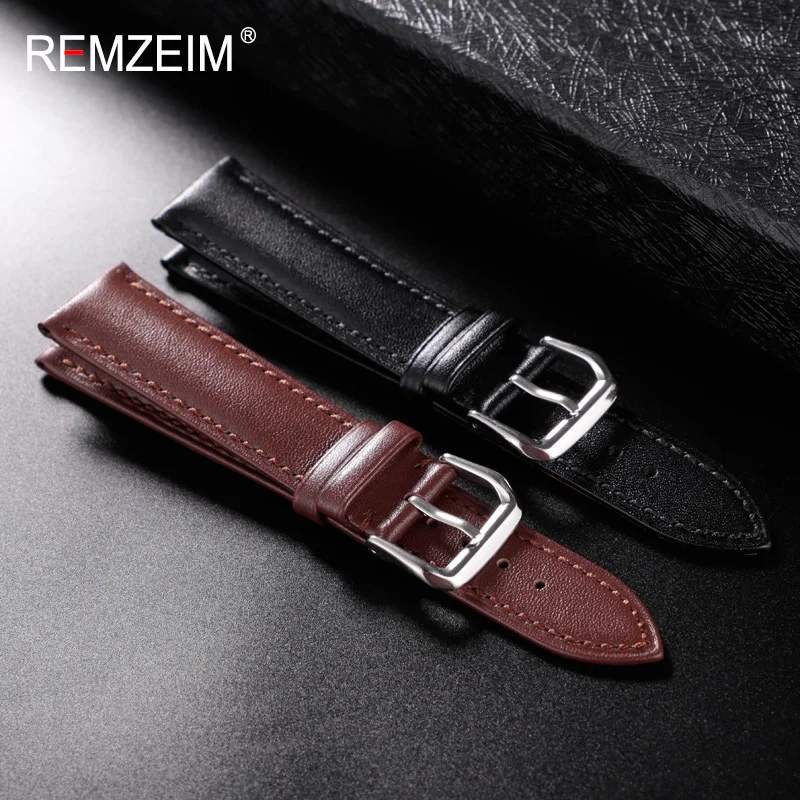 Ремешок для часов REMZEIM из натуральной телячьей кожи, аксессуары для часов, 18 20 22 24 мм коричневый черный