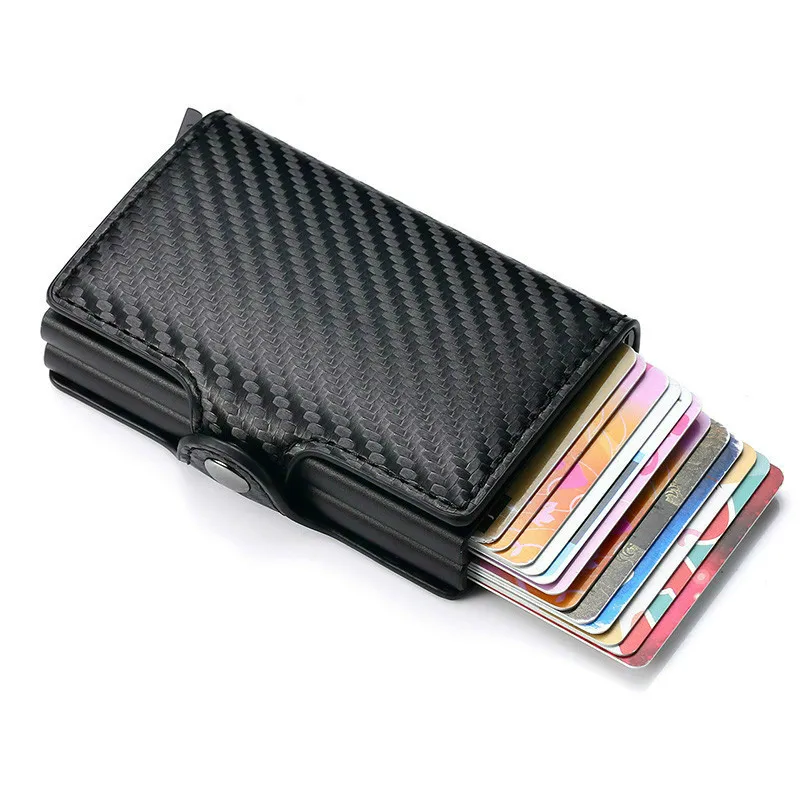Bycobecy новый держатель для кредитных карт из углеродного волокна с защитой от радиочастотной идентификации мужской металлический алюминиевый двойной футляр держатель для банковских карт Минималистский кошелек