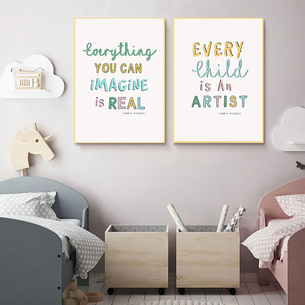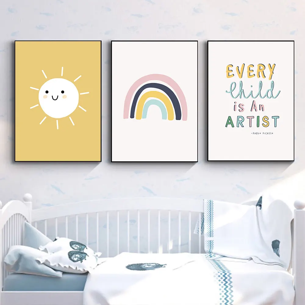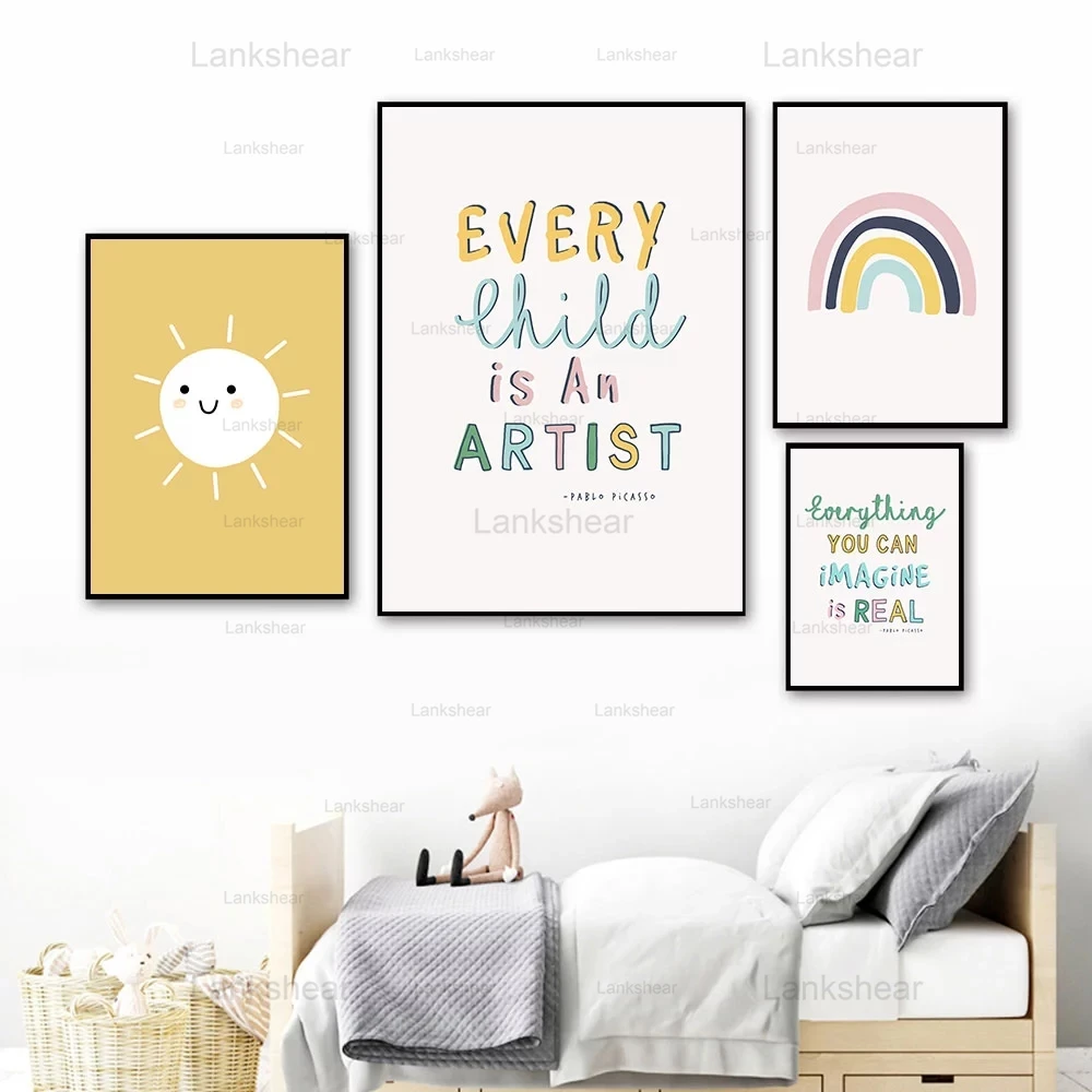 Каждый ребенок художник принт для детской красочный постер с радугой картина мультфильм постер с солнцем вдохновленная Настенная картина Декор детской комнаты