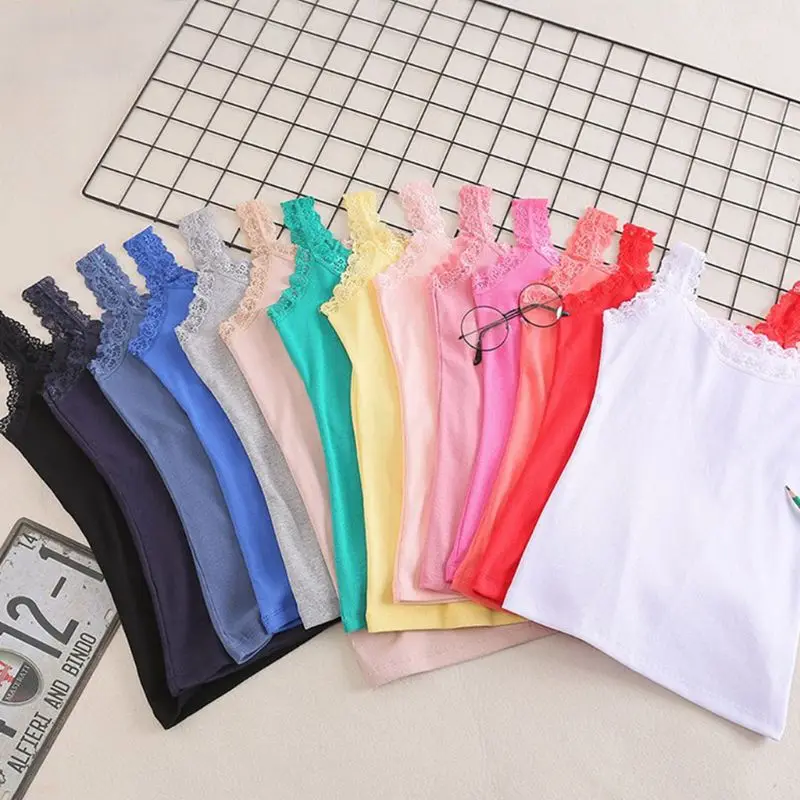 Женская майка без рукавов, яркая однотонная Базовая майка карамельного цвета с цветочным кружевом, ребристый вязаный Повседневный облегающий жилет