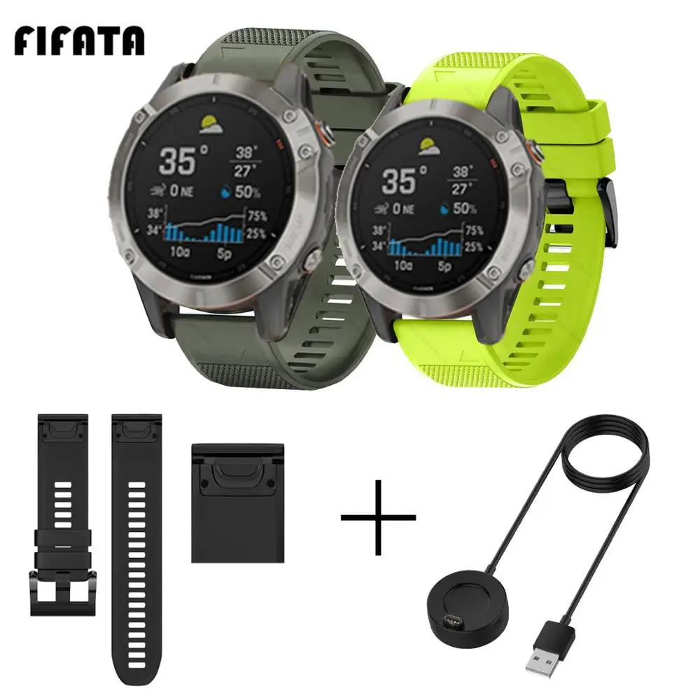 Сменный силиконовый ремешок FIFATA 26 22 20 мм + 100 см док-станция для быстрой зарядки для умных часов Garmin Fenix 5 5S 5X 6 6S 6X