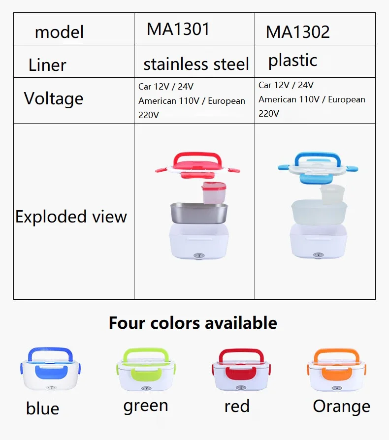 Ланч-бокс с ложкой, 12 В, 24 В, 110 В, 220 В