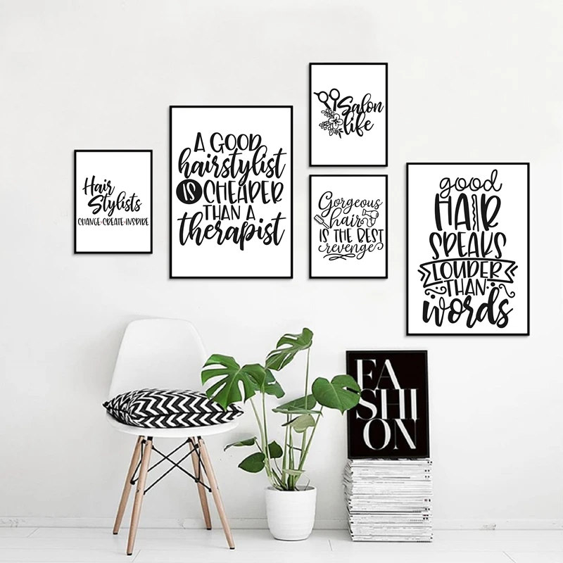 Декор парикмахерской салона красоты цитаты Холст Плакаты Парикмахерская подарок черный белый Принт минималистская живопись декоративная картина