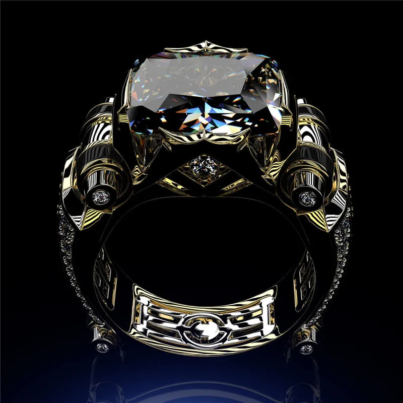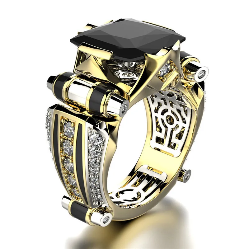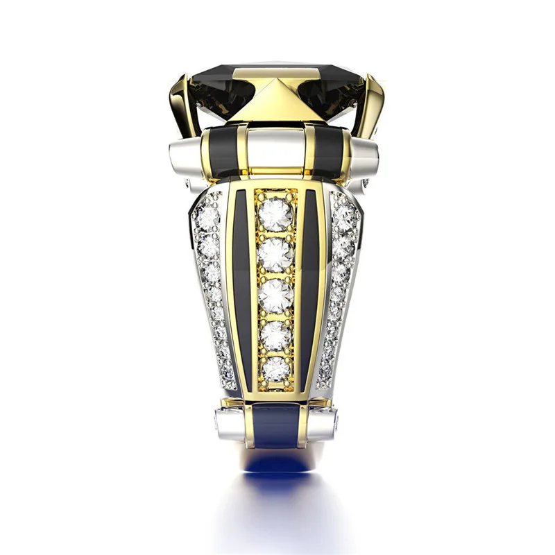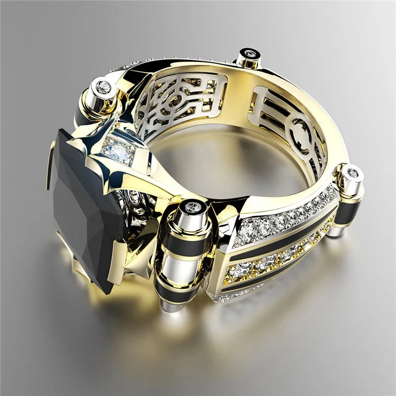 Двухцветные кольца для мужчин с геометрическим рисунком, винтажное Ювелирное Украшение с черным Цирконом, желтое золото, с фианитом, обручальное кольцо, антикварная бижутерия