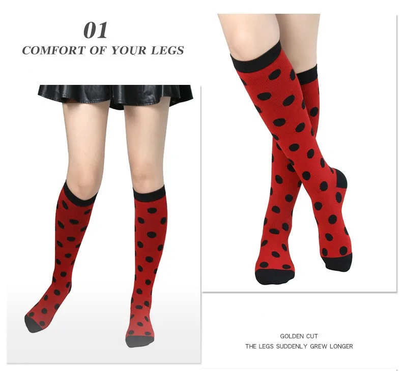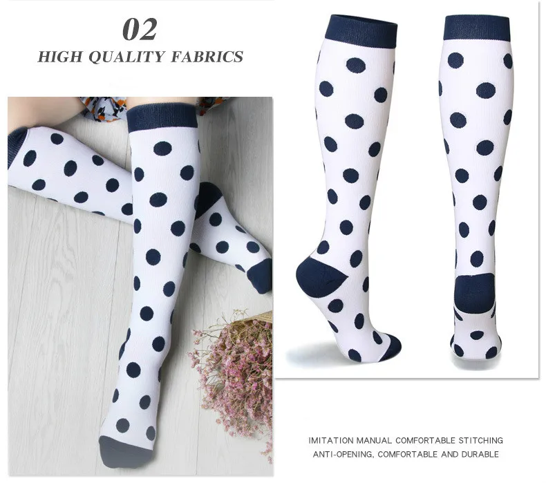 Компрессионные носки в полоску, цветные точки, длинные носки для бе...