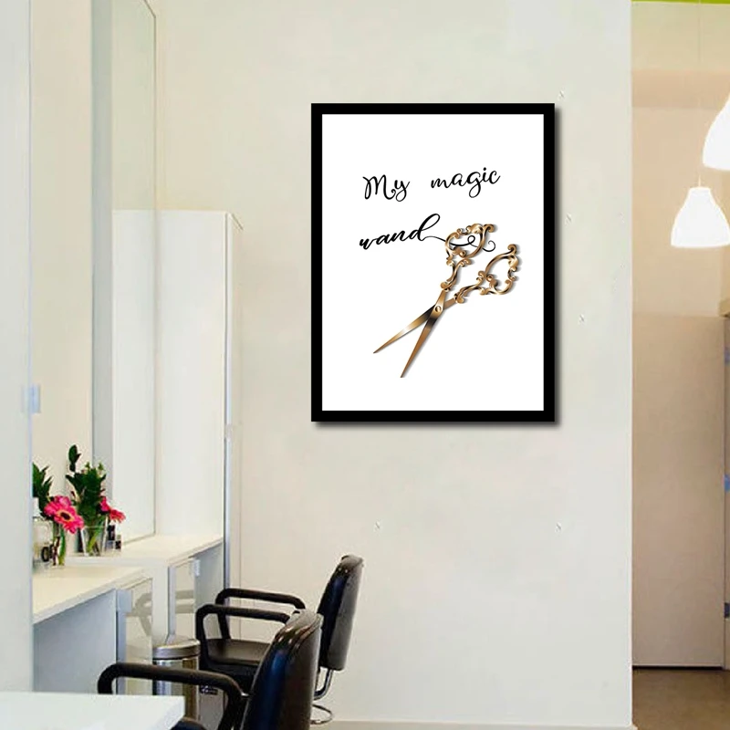 Парикмахерская Картина на холсте с изображением чтения парикмахерской подарок постер с золотыми ножницами для салона красоты Настенная картина декор для спа